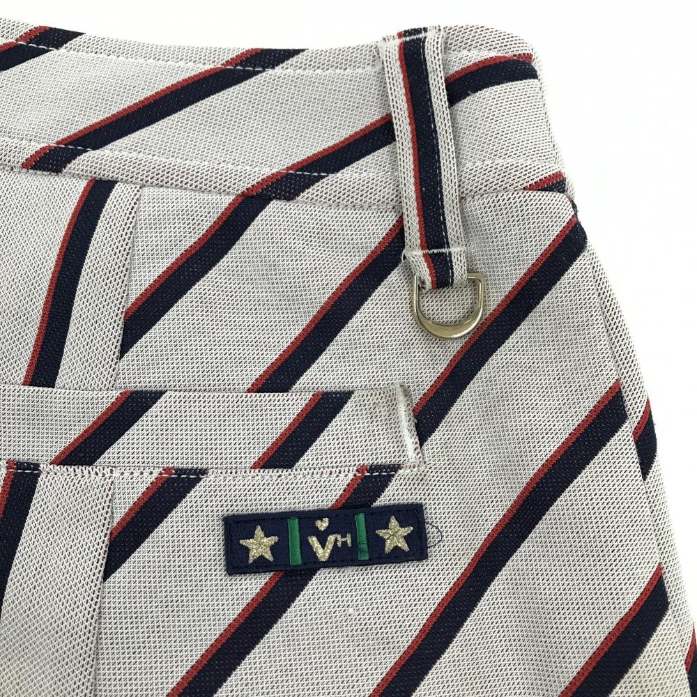 ビバハート スカート 白×ネイビー ストライプ 内側インナーパンツ レディース 40(M) ゴルフウェア VIVA HEART