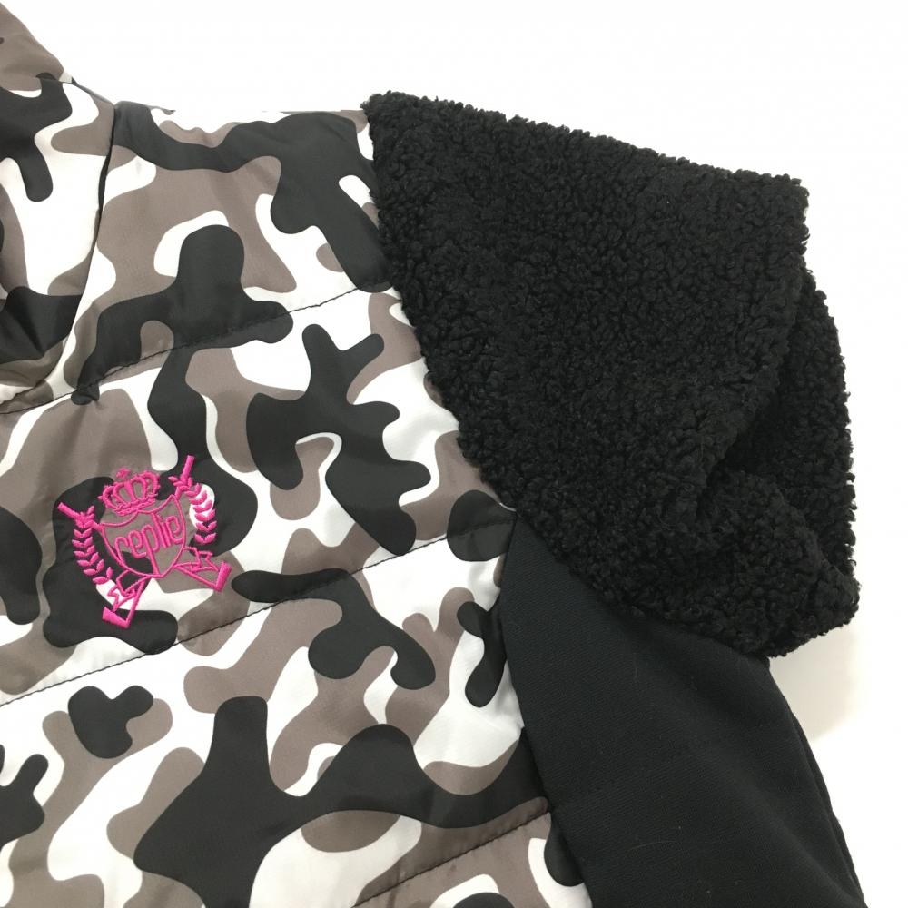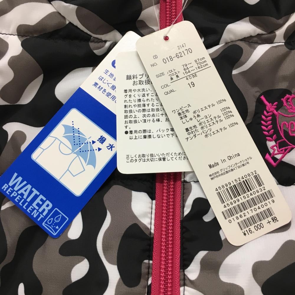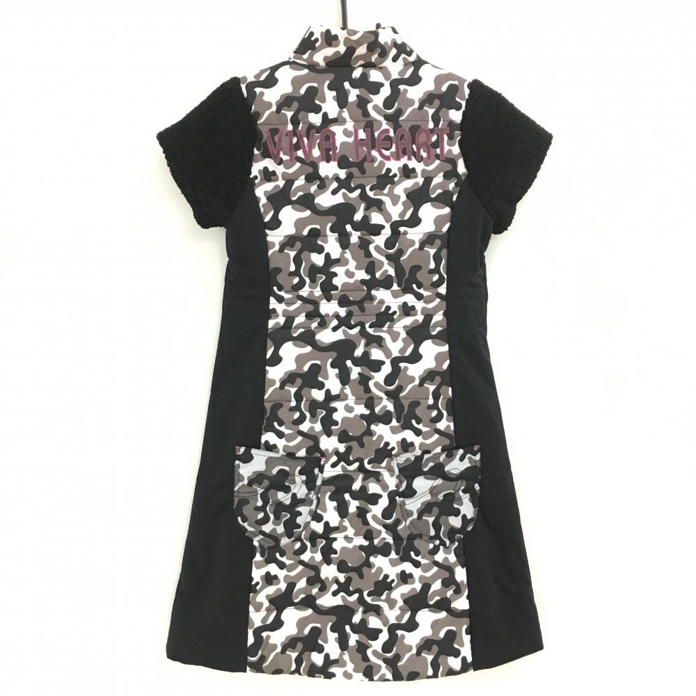 【新品】ビバハートreplie 中綿半袖ワンピース 黒×白 一部カモフラ 迷彩 袖ボア レディース 40(M) ゴルフウェア VIVA HEART