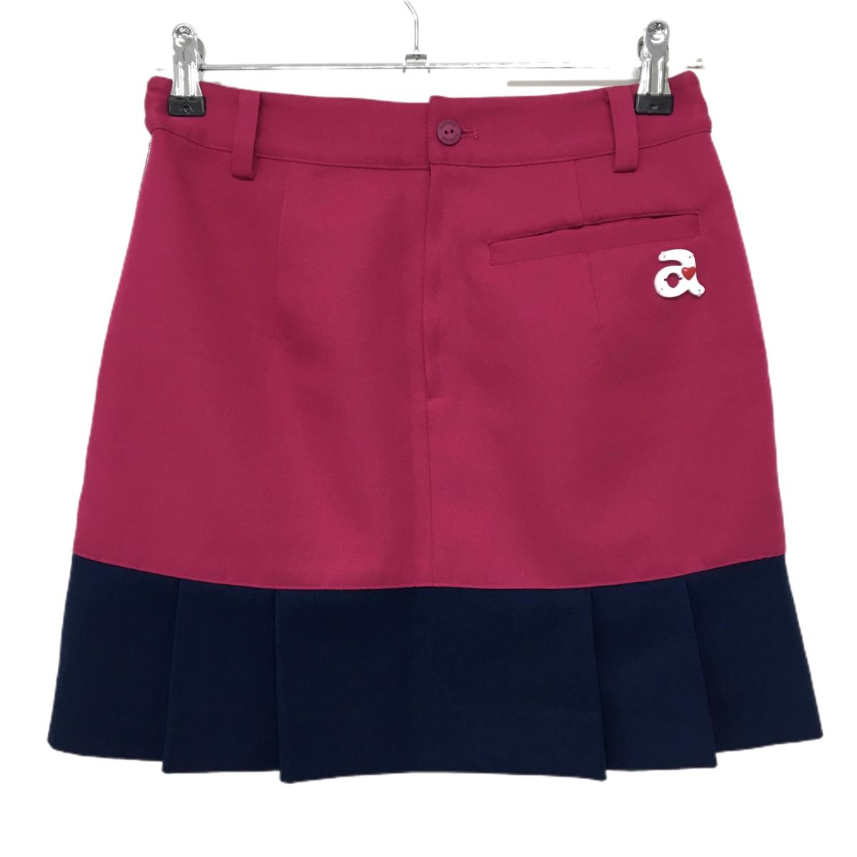 【美品】アルチビオ スカート ピンク系×ネイビー 裾プリーツ サイドライン 裏地付 レディース 36(S) ゴルフウェア archivio