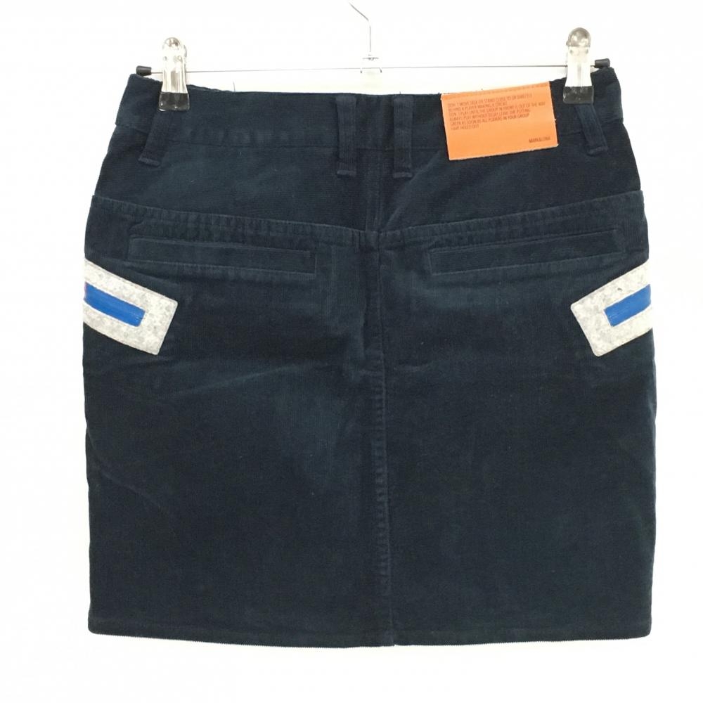 【美品】マークアンドロナ コーデュロイスカート ネイビー ジップロゴ レディース 38(M) ゴルフウェア MARK&LONA