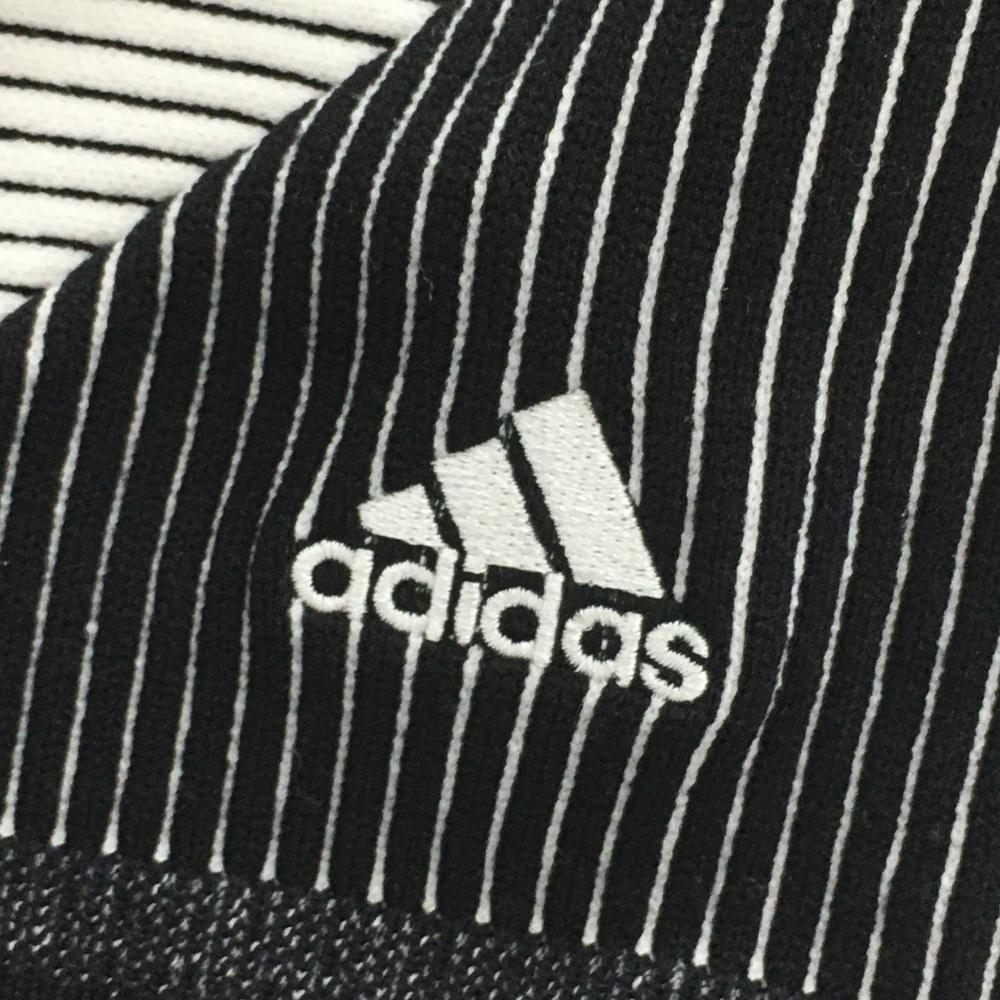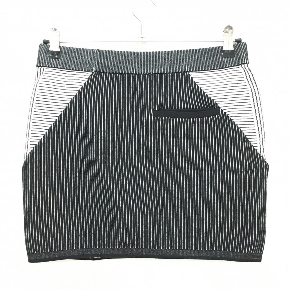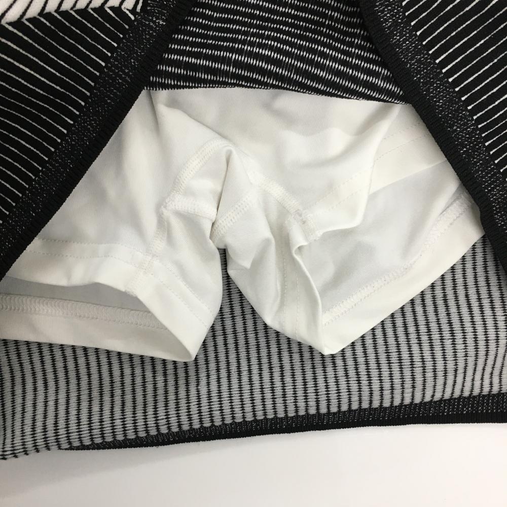 【美品】アディダス ニットスカート 白×黒 ボーダー 後ろストライプ ナイロン100% レディース J/L ゴルフウェア adidas