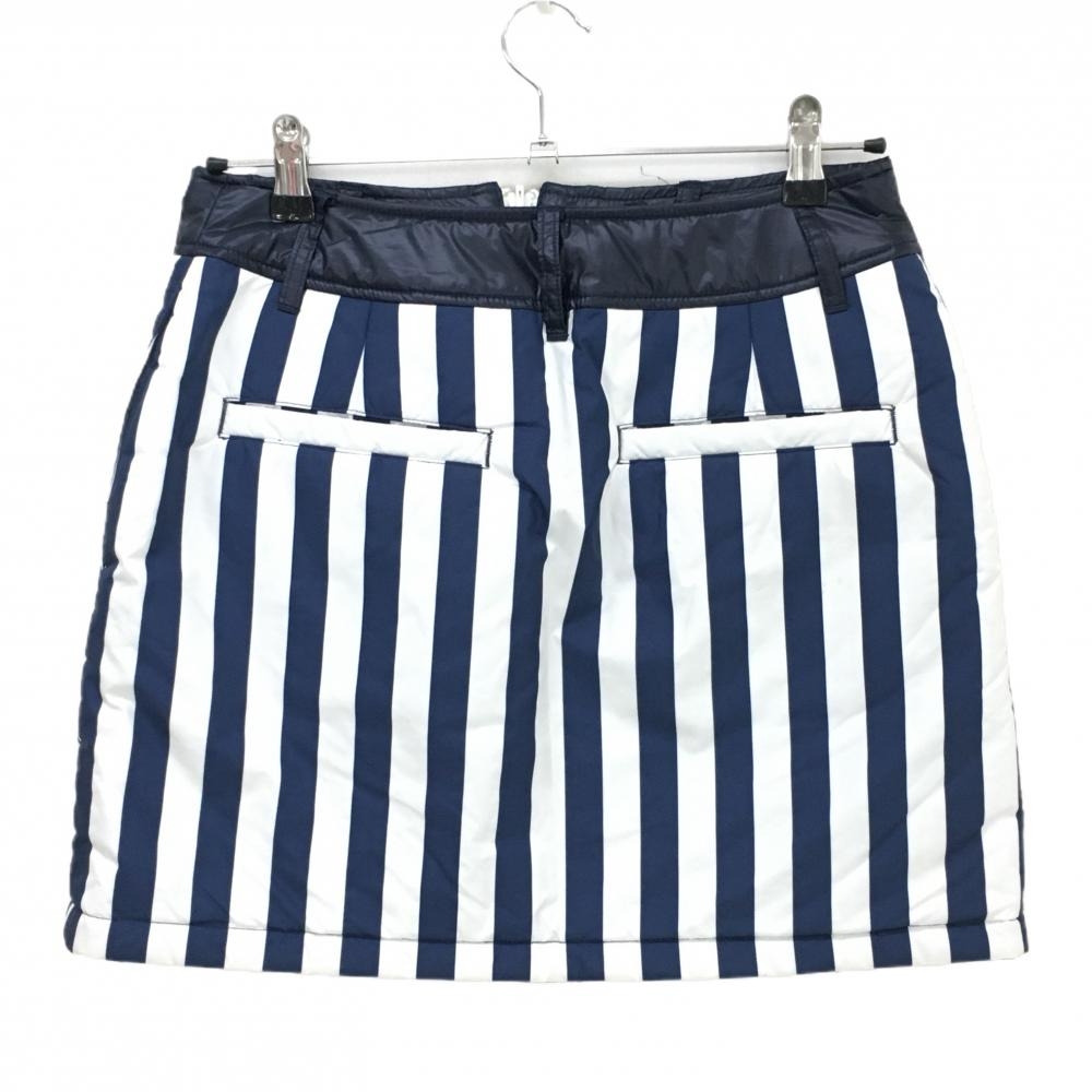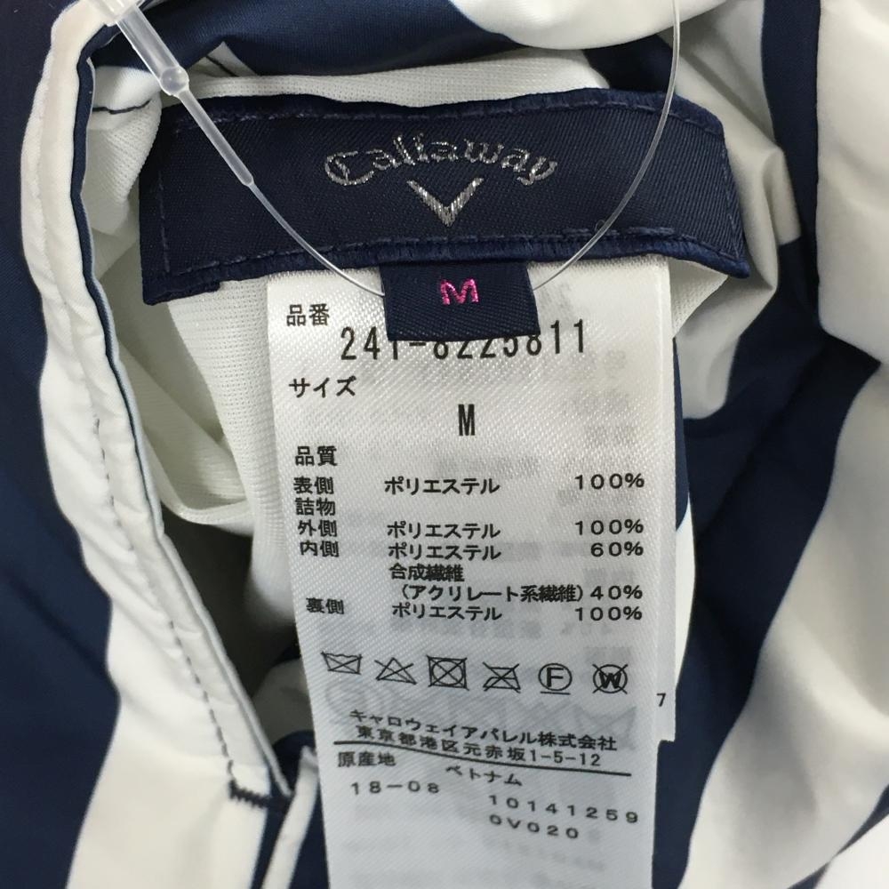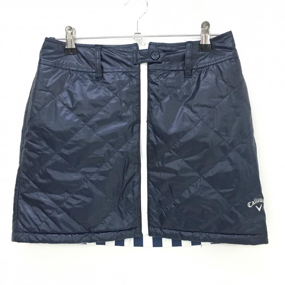 【美品】キャロウェイ 中綿リバーシブルスカート 白×ネイビー ストライプ 片面無地 レディース M ゴルフウェア Callaway