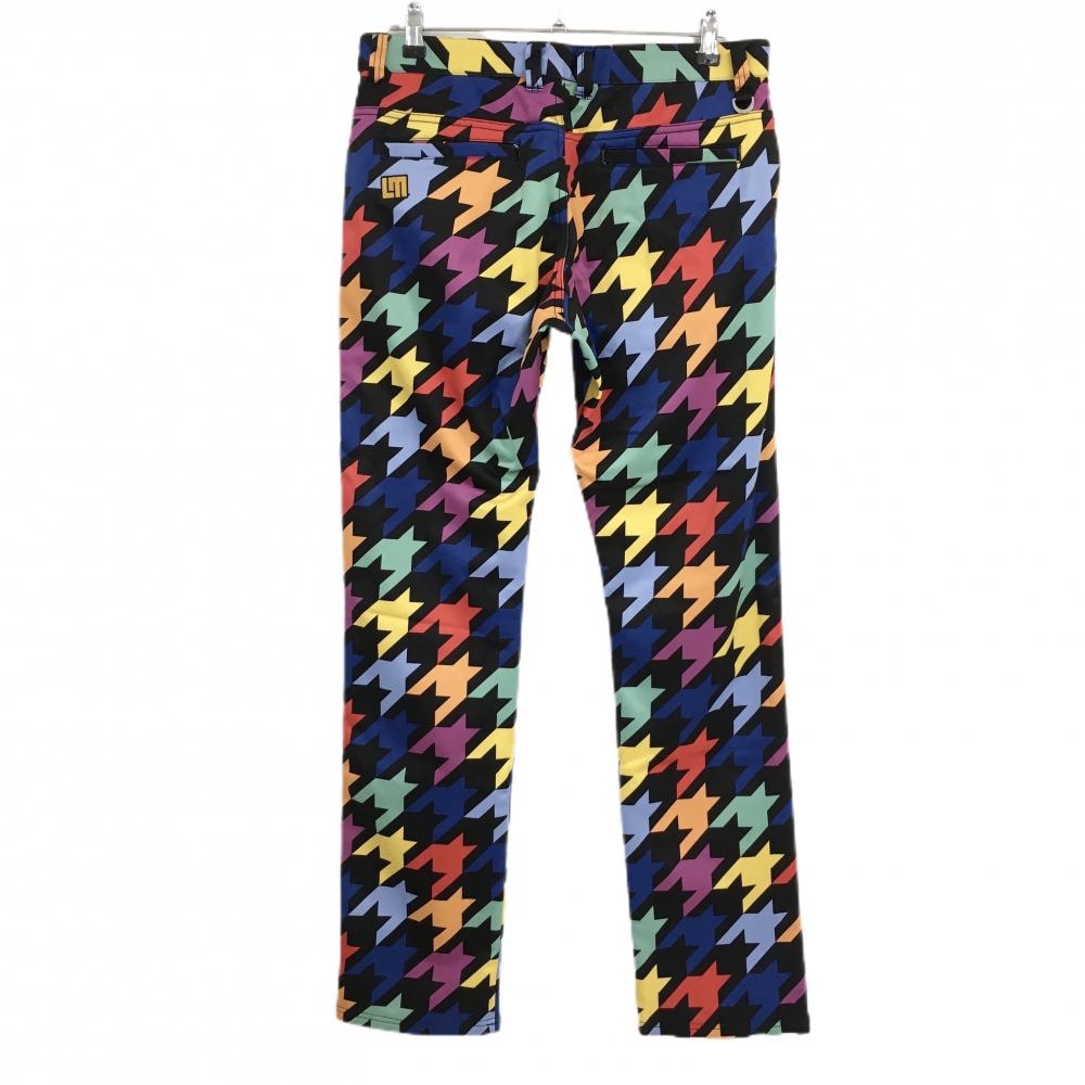 【美品】ラウドマウス パンツ 黒×マルチカラー ラズルダズルブラック 裏起毛 総柄 メンズ L ゴルフウェア LOUDMOUTH