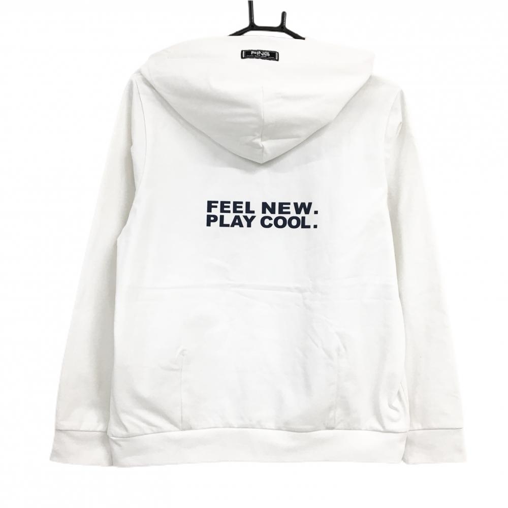 ピン パーカー 白×ネイビー フロントロゴプリント レディース M ゴルフウェア 2023年モデル PING