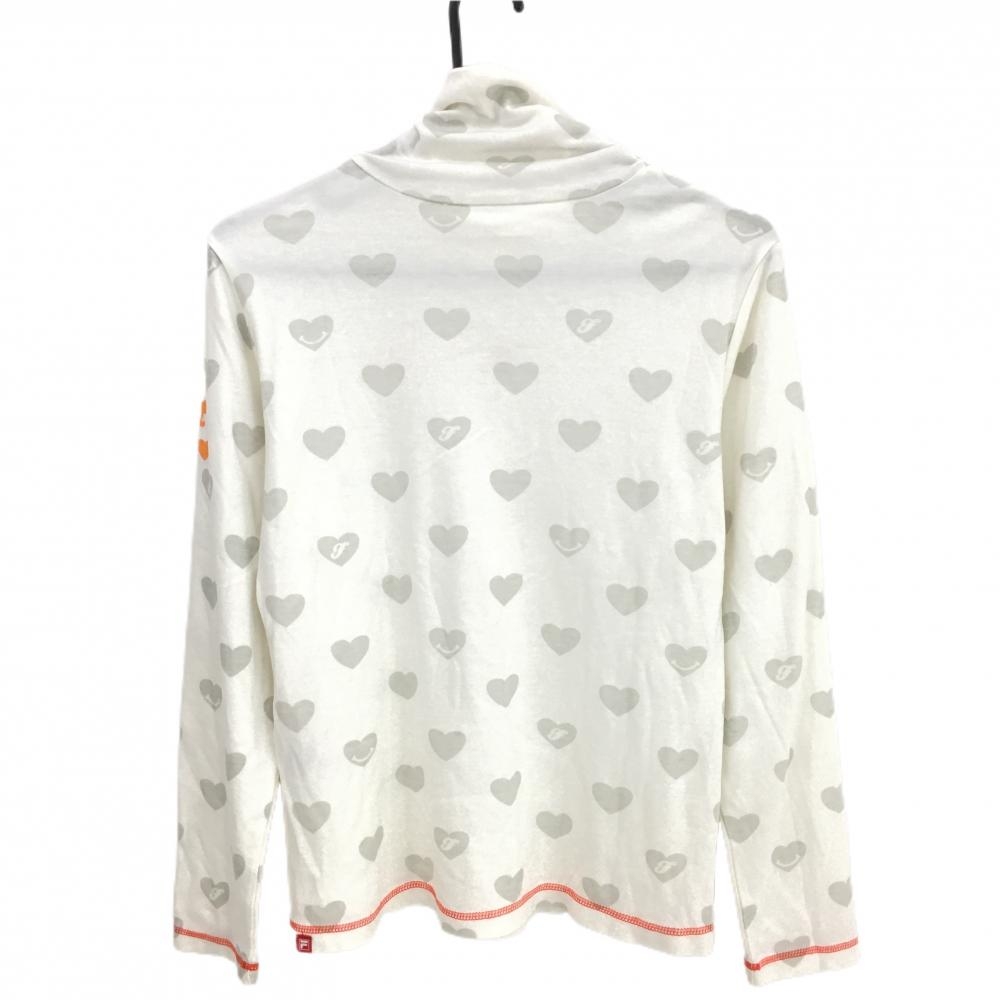 【超美品】フィラゴルフ 長袖ハイネックシャツ 白×グレー ハート総柄 ロゴ スパンコール レディース ゴルフウェア FILA GOLF