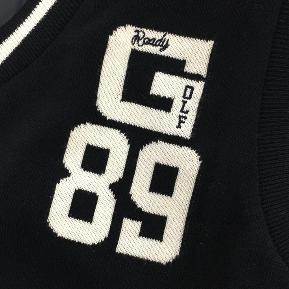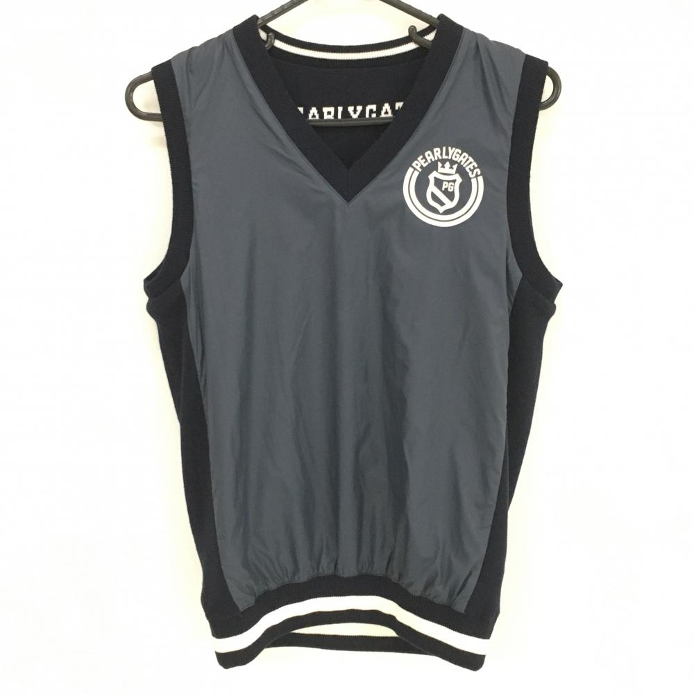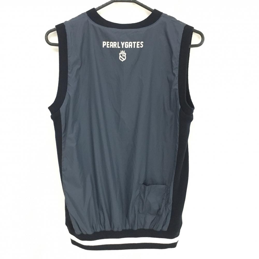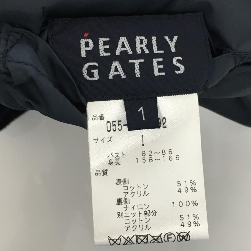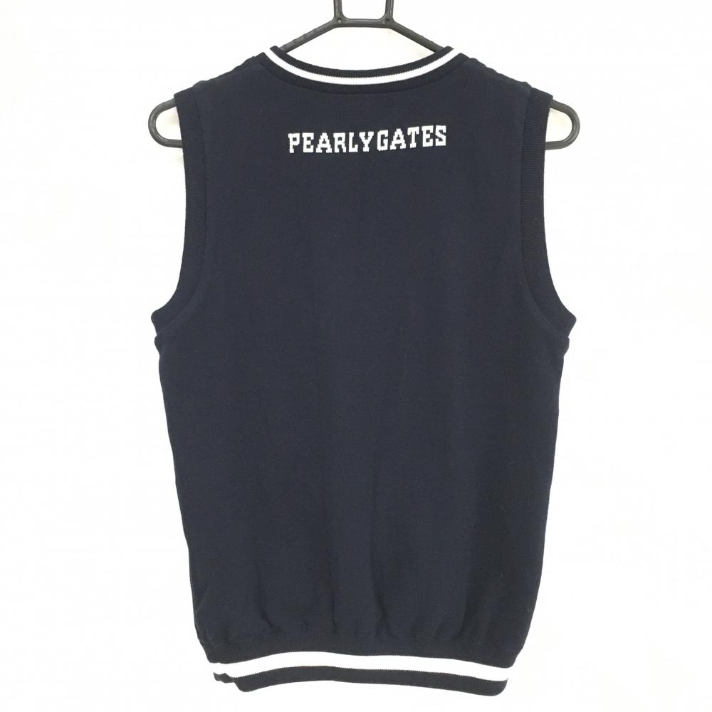 【美品】パーリーゲイツ リバーシブルニットベスト ダークネイビー×白 裏ナイロン Vネック レディース 1(M) ゴルフウェア PEARLY GATES