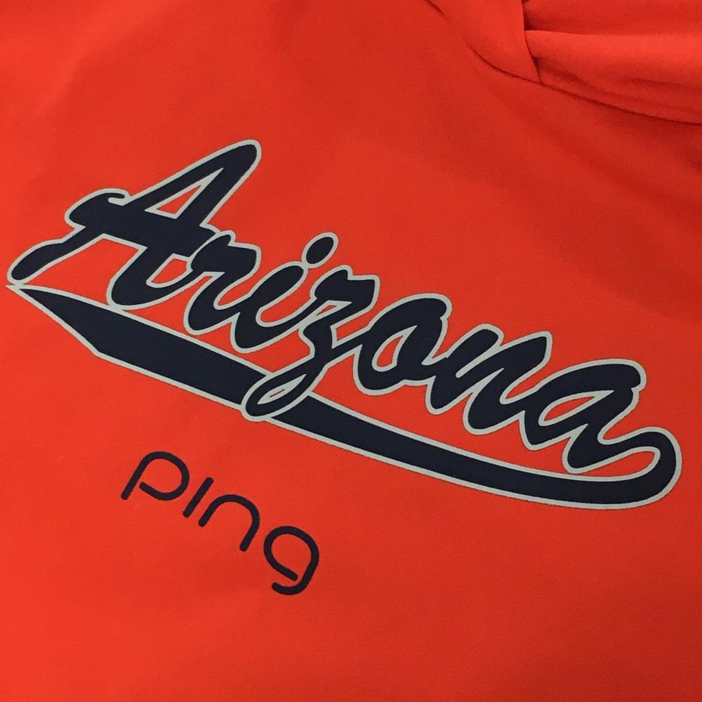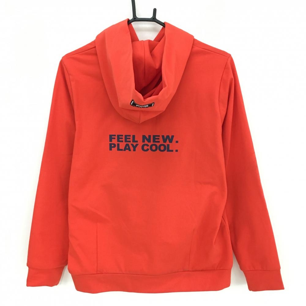 【美品】ピン パーカー レッド系×ネイビー フロントロゴプリント レディース M ゴルフウェア 2023年モデル PING