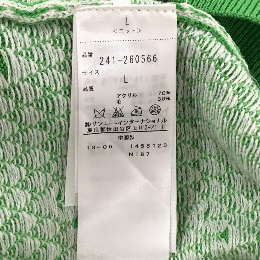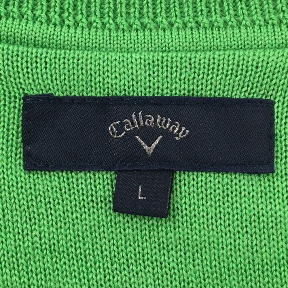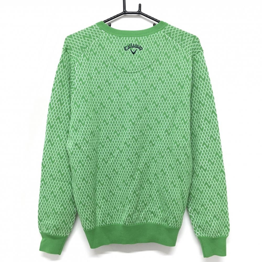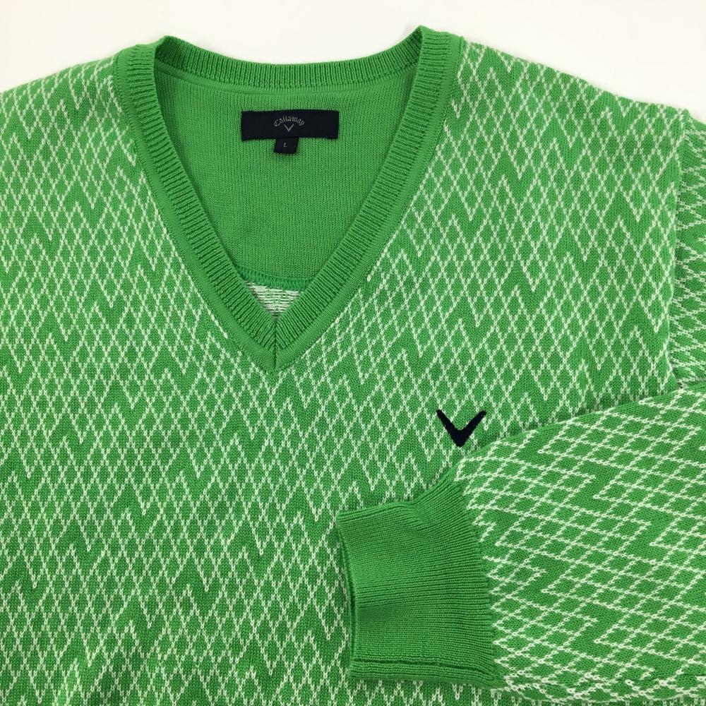 【超美品】キャロウェイ セーター ライトグリーン×白 総柄 ダイヤ柄調 ニット ウール混 Vネック メンズ L ゴルフウェア Callaway