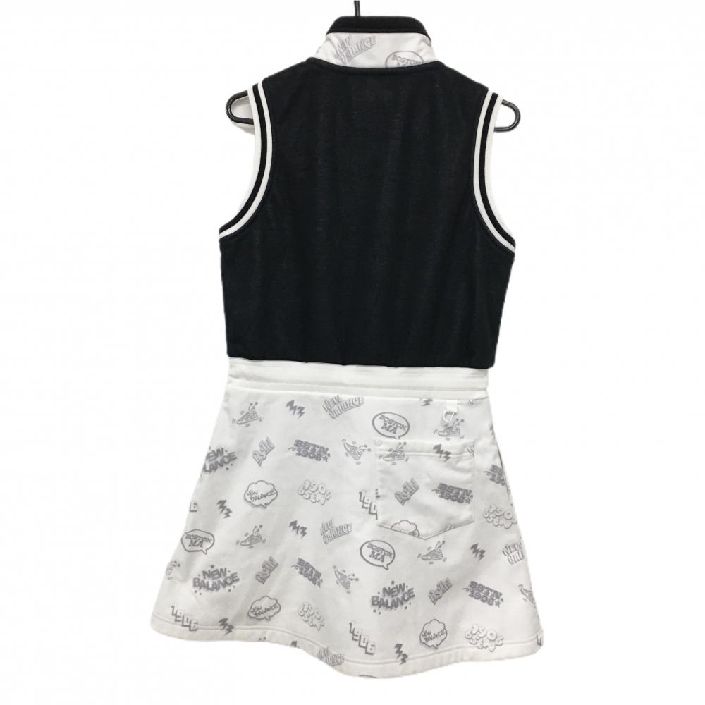 【美品】ニューバランスゴルフ ノースリーブワンピース 黒×白 ネック・スカート部総柄 微起毛 レディース 1(M) ゴルフウェア New Balance