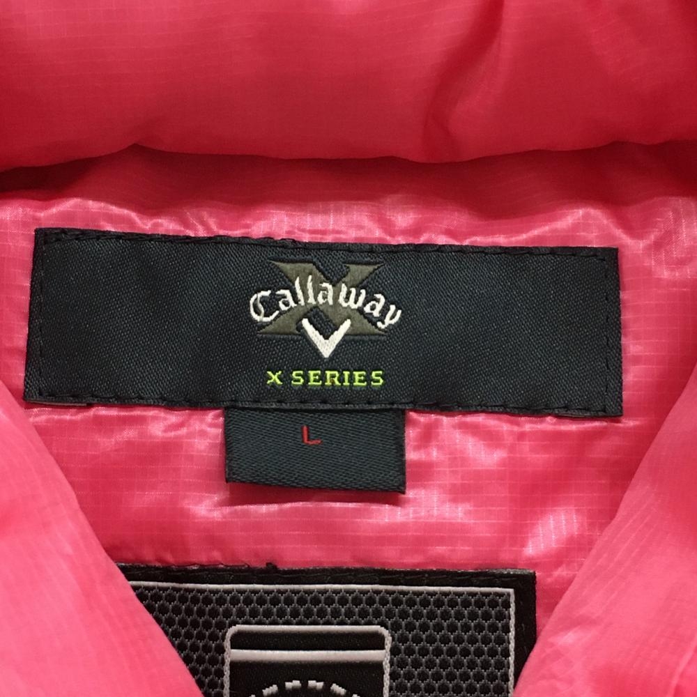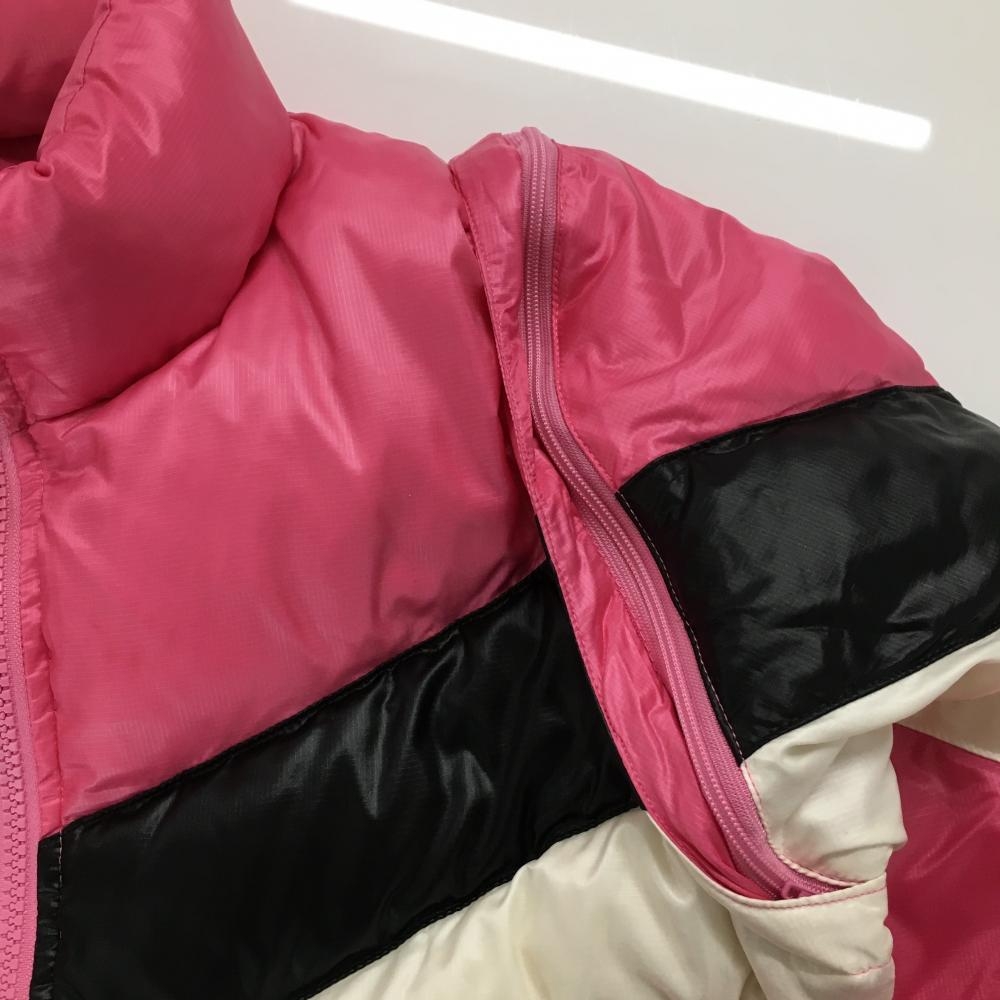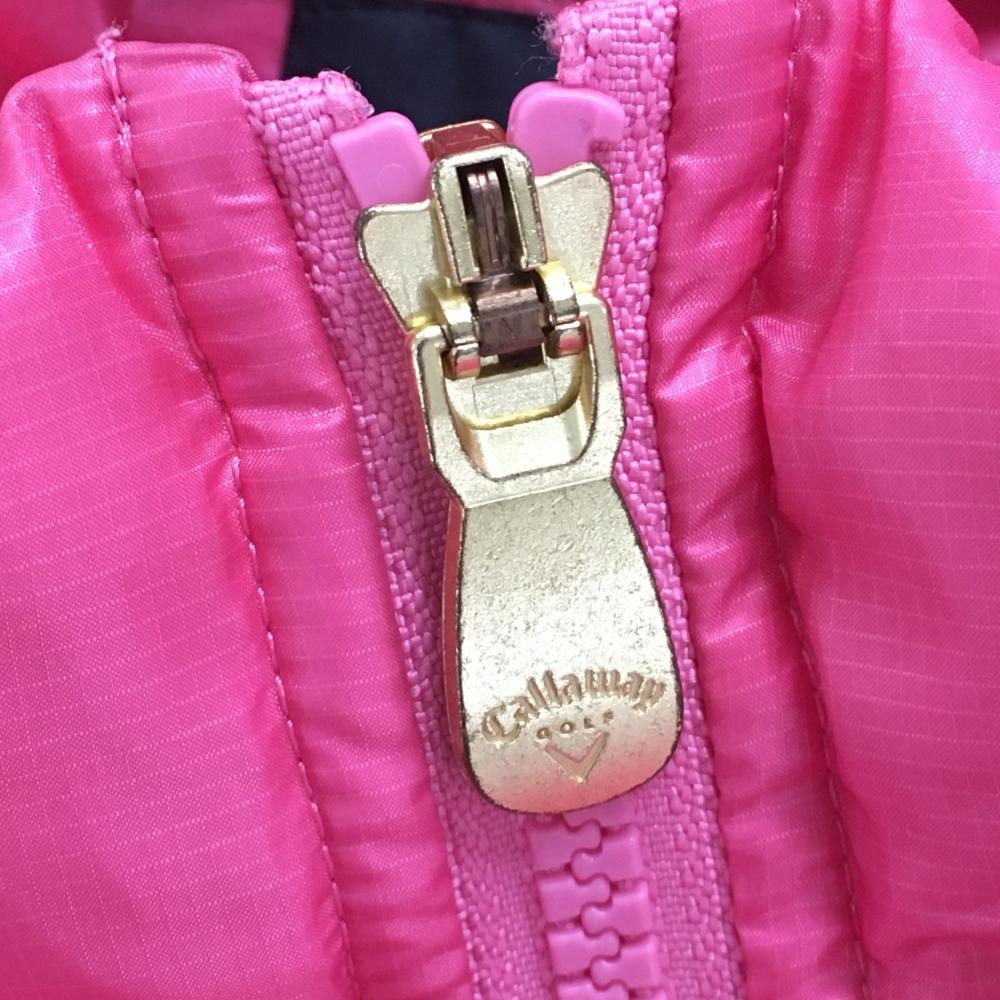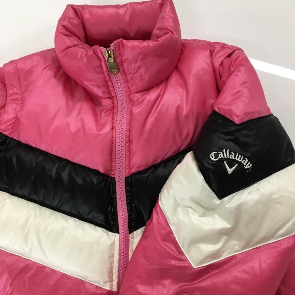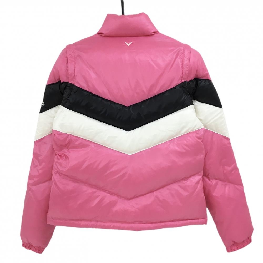 【美品】キャロウェイ 2WAYダウンジャケット ピンク×黒×白 袖着脱可 ダブルジップ レディース L ゴルフウェア Callaway