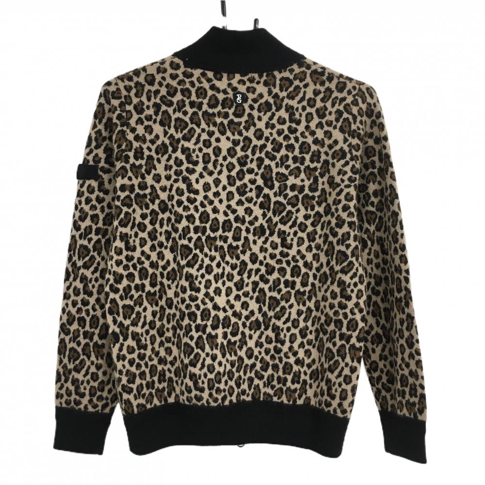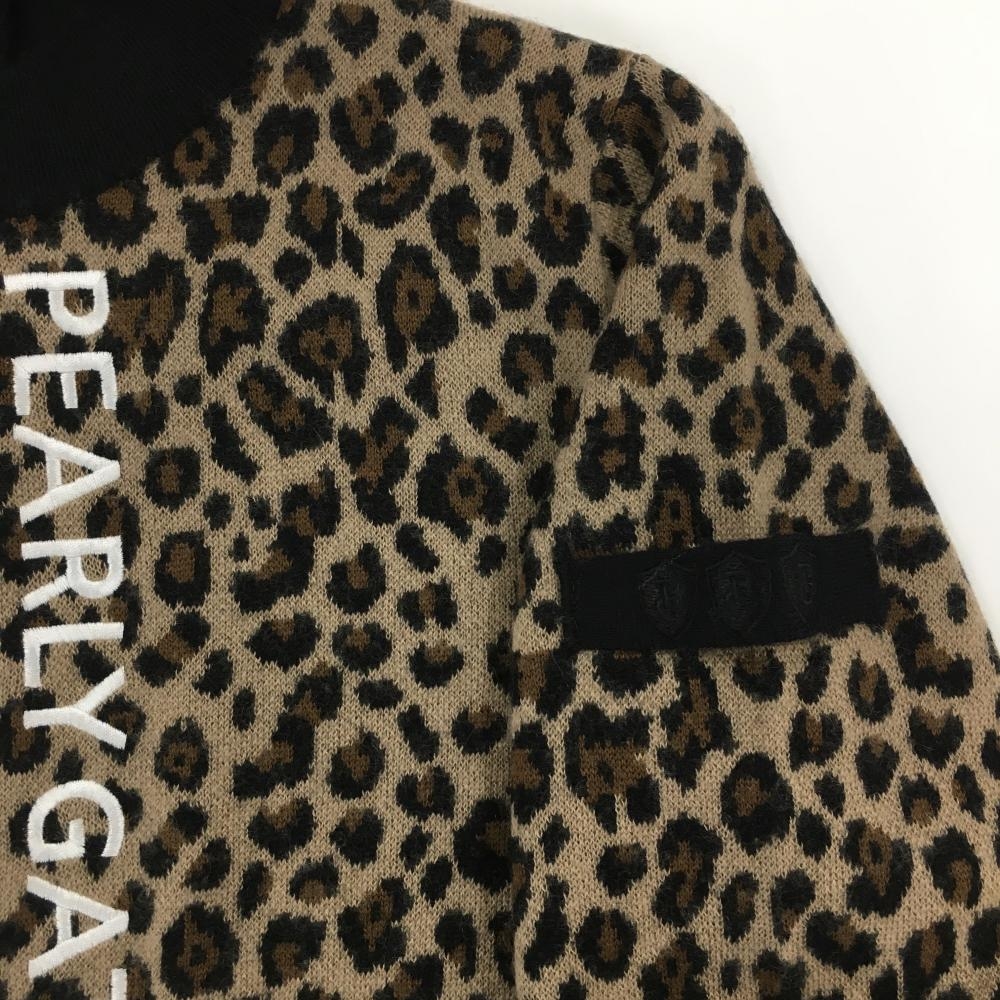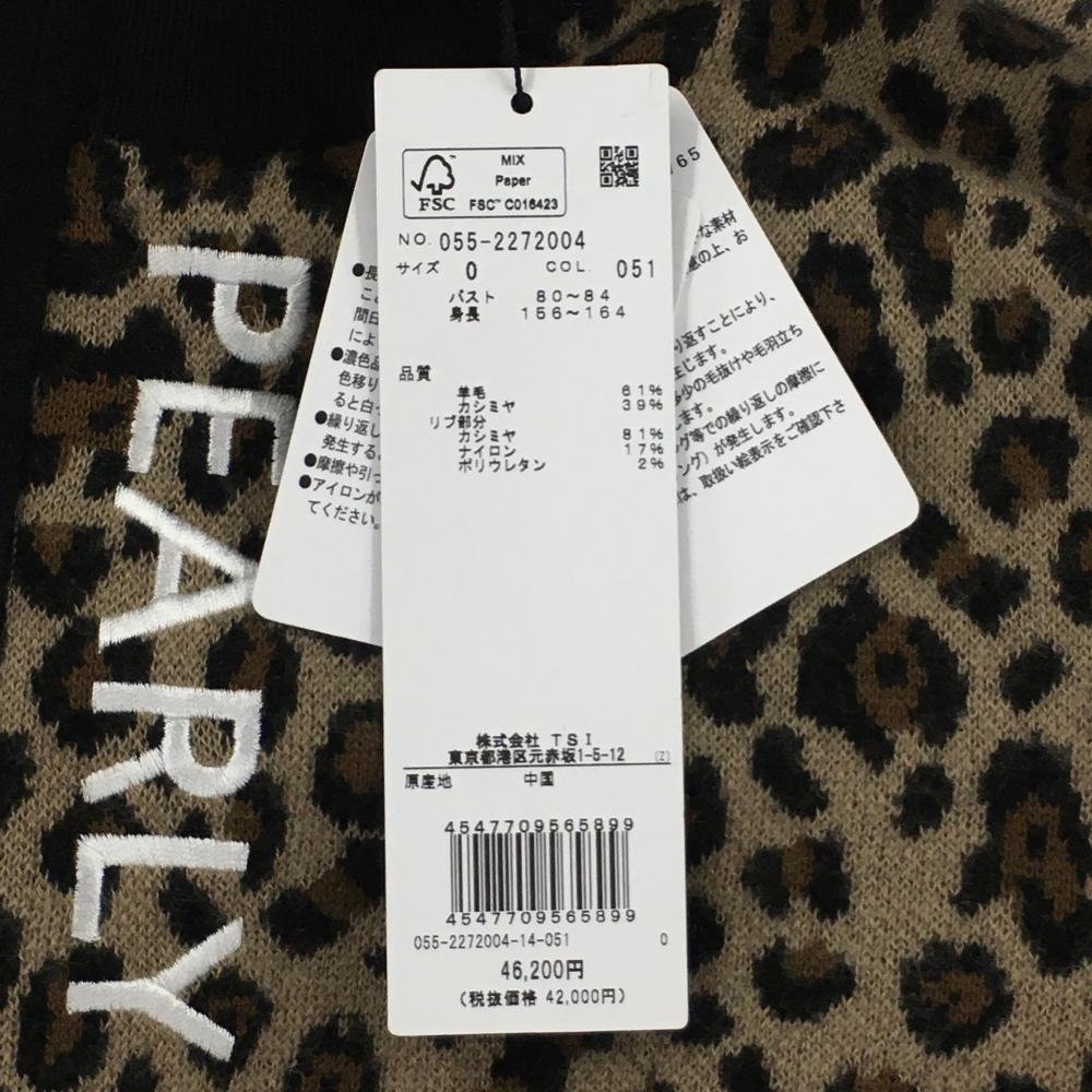 【新品】パーリーゲイツ ニットジャケット ブラウン×黒 レオパード カシミヤ混 レディース 0(S) ゴルフウェア PEARLY GATES