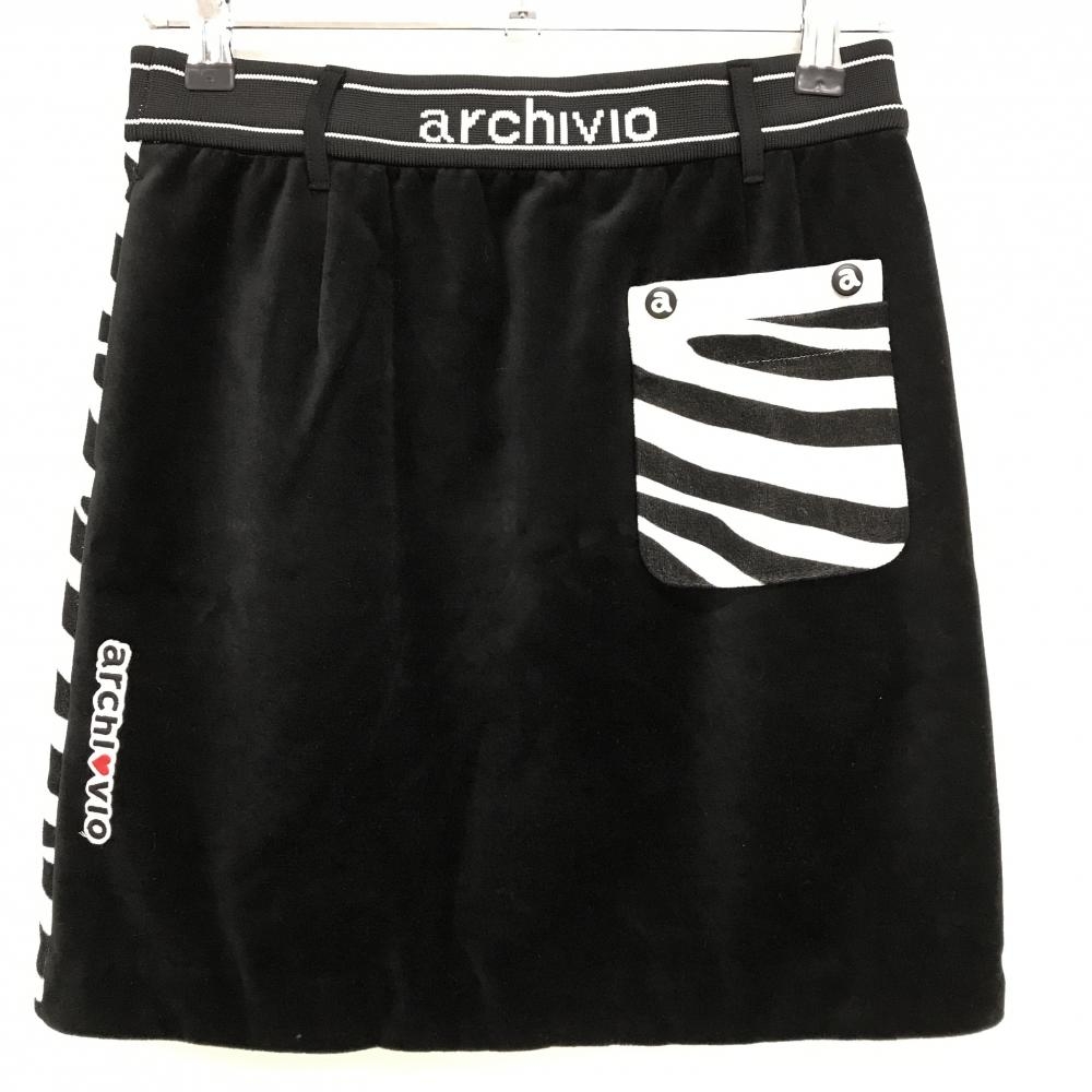 【超美品】アルチビオ スカート 黒×白 ゼブラ柄 ベロア調 ウエストゴム 前後リバーシブル レディース 38(M) ゴルフウェア archivio