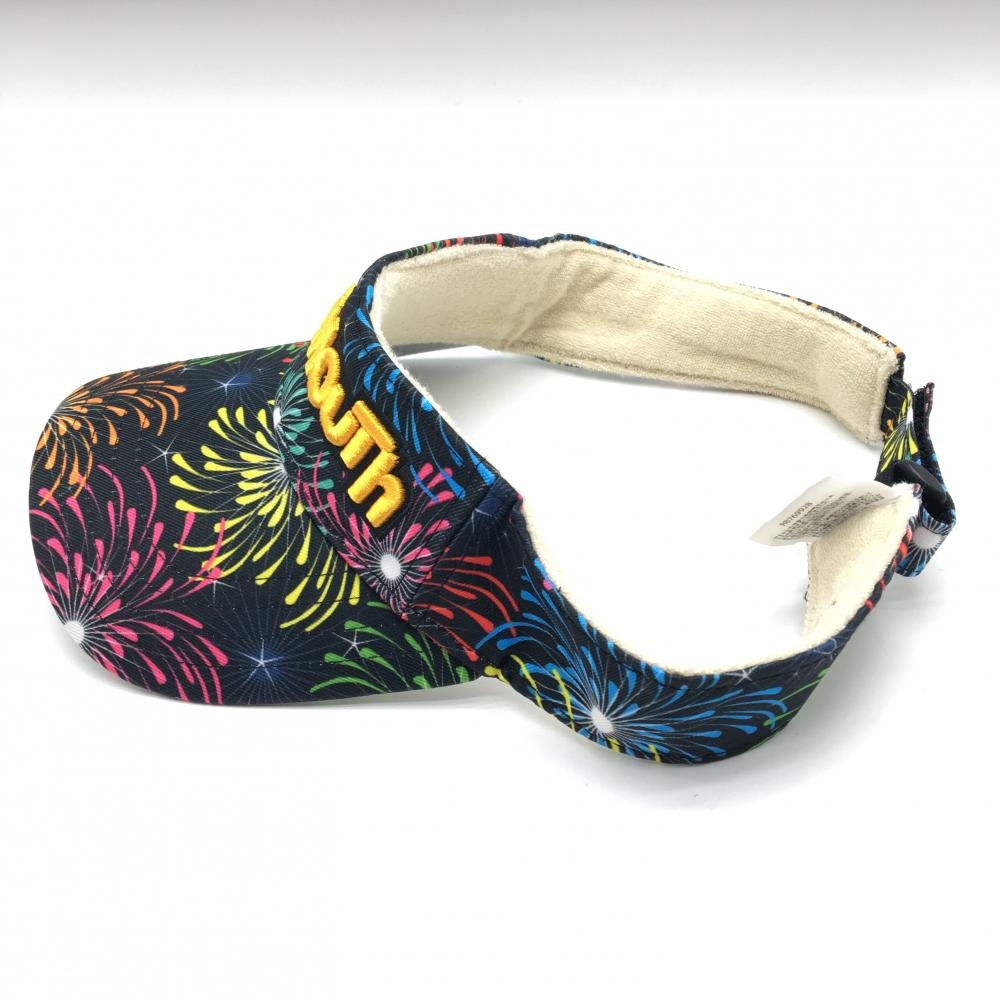 【美品】ラウドマウス サンバイザー 黒×マルチカラー グランドフィナーレ 総柄 ゴルフウェア LOUDMOUTH