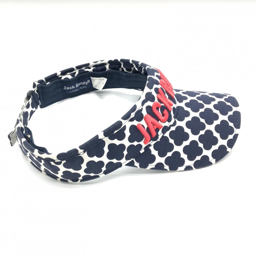 ジャックバニー サンバイザー 白×ネイビー 総柄 立体ロゴピンク FR ゴルフウェア Jack Bunny