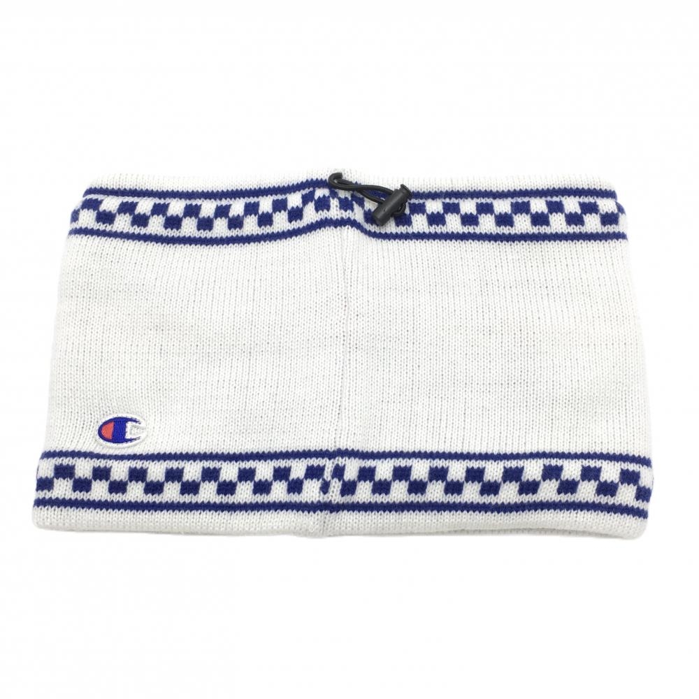 【美品】チャンピオン ネックウォーマー 白×ブルー ドローコード 裏フリース ゴルフウェア Champion