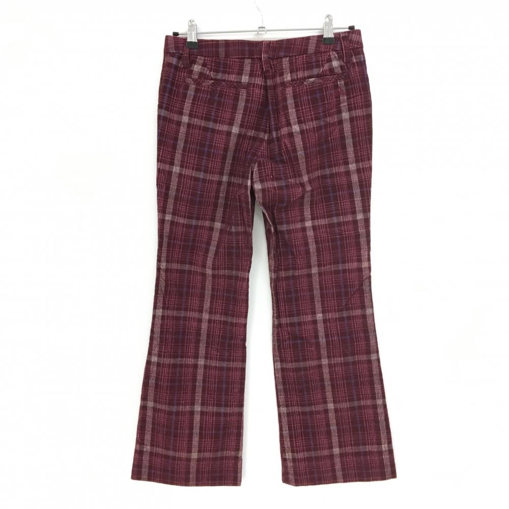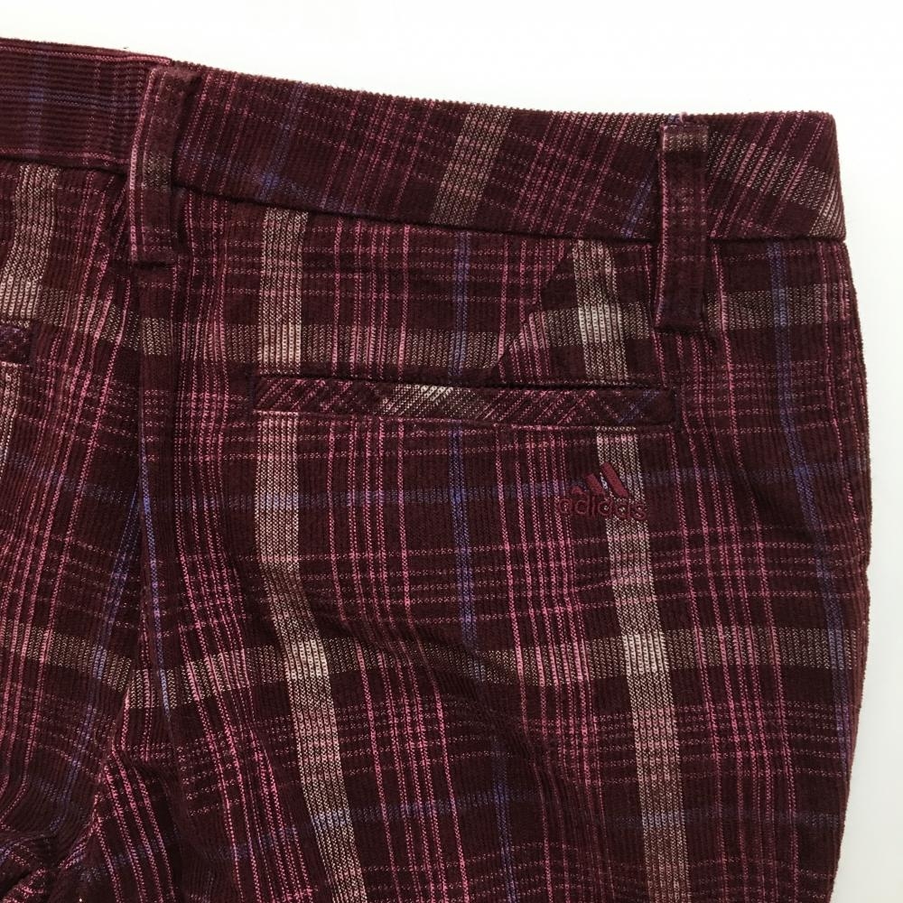 【超美品】アディダス コーデュロイパンツ ボルドー×白×ピンク チェック レディース M ゴルフウェア adidas