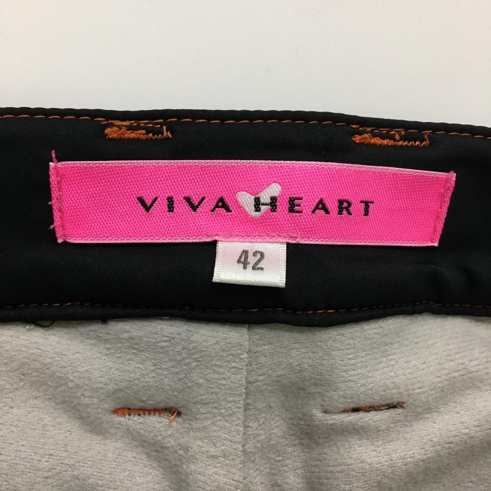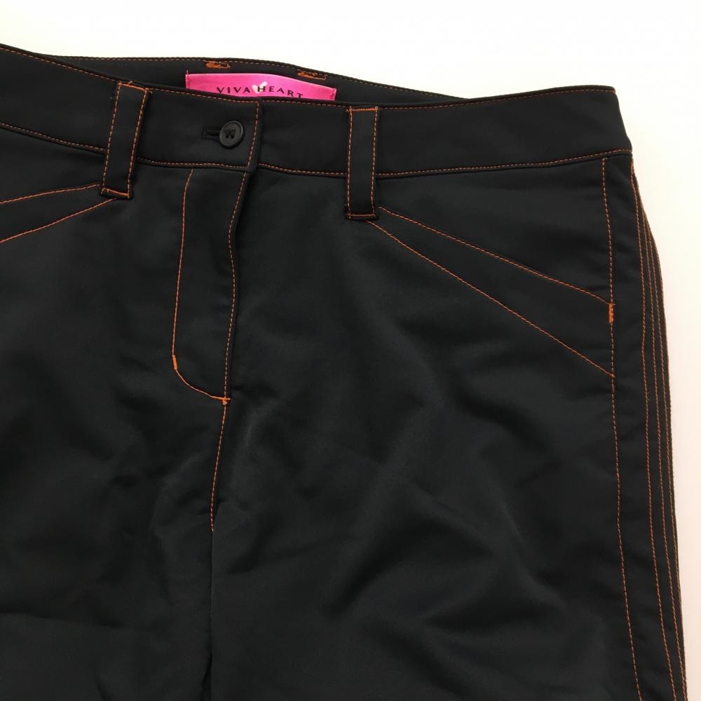 【美品】ビバハート パンツ 黒 裏微起毛 オレンジステッチ レディース 42(L) ゴルフウェア VIVA HEART