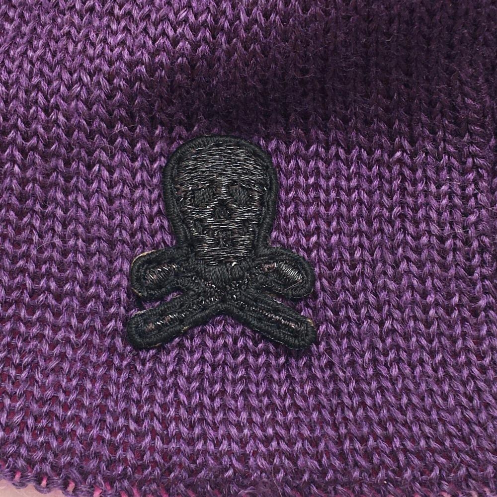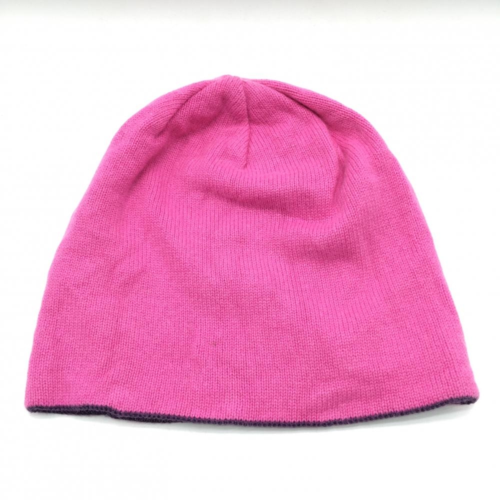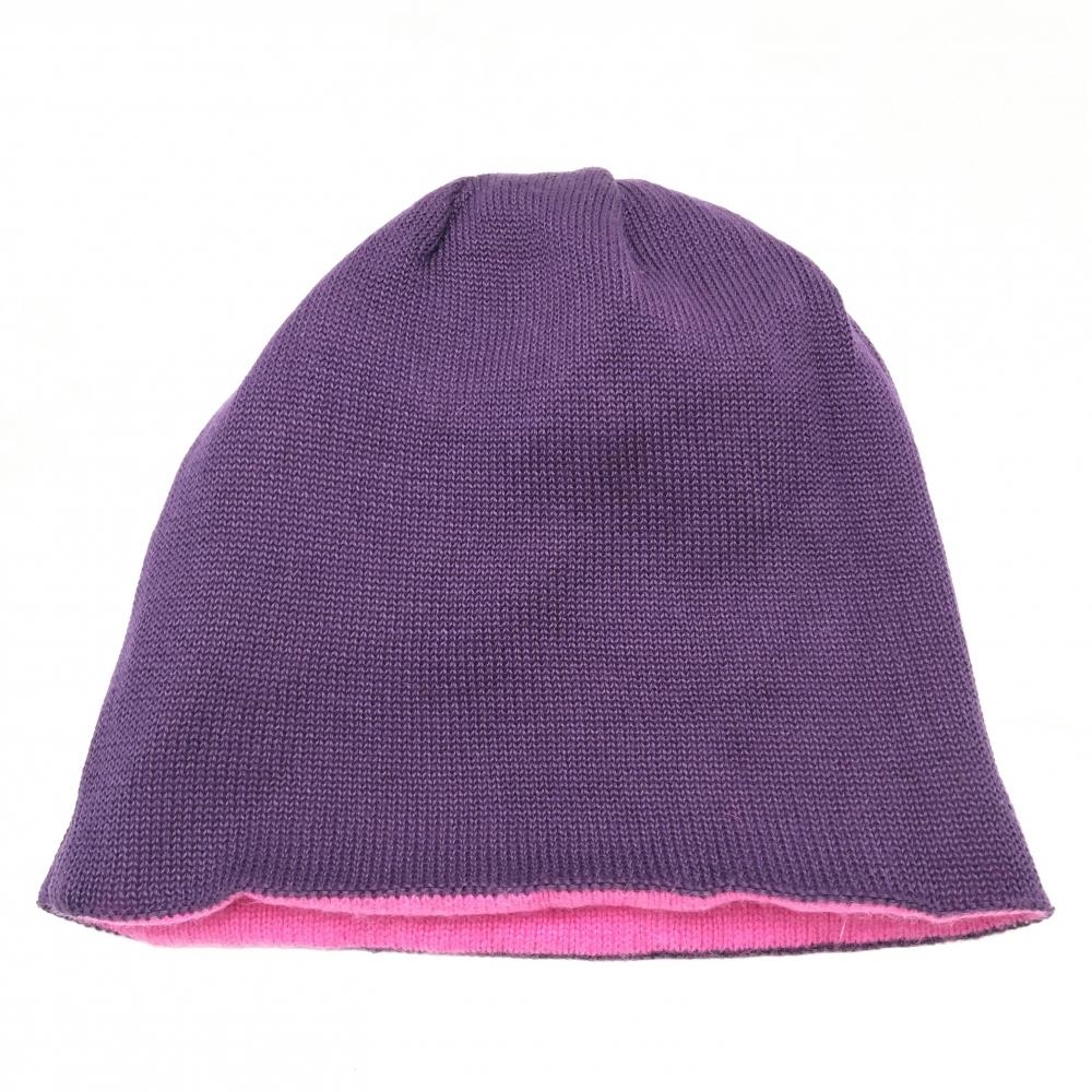 【超美品】マークアンドロナ リバーシブルニット帽 ピンク 片面パープル ラインストーンスカル ゴルフウェア MARK&LONA