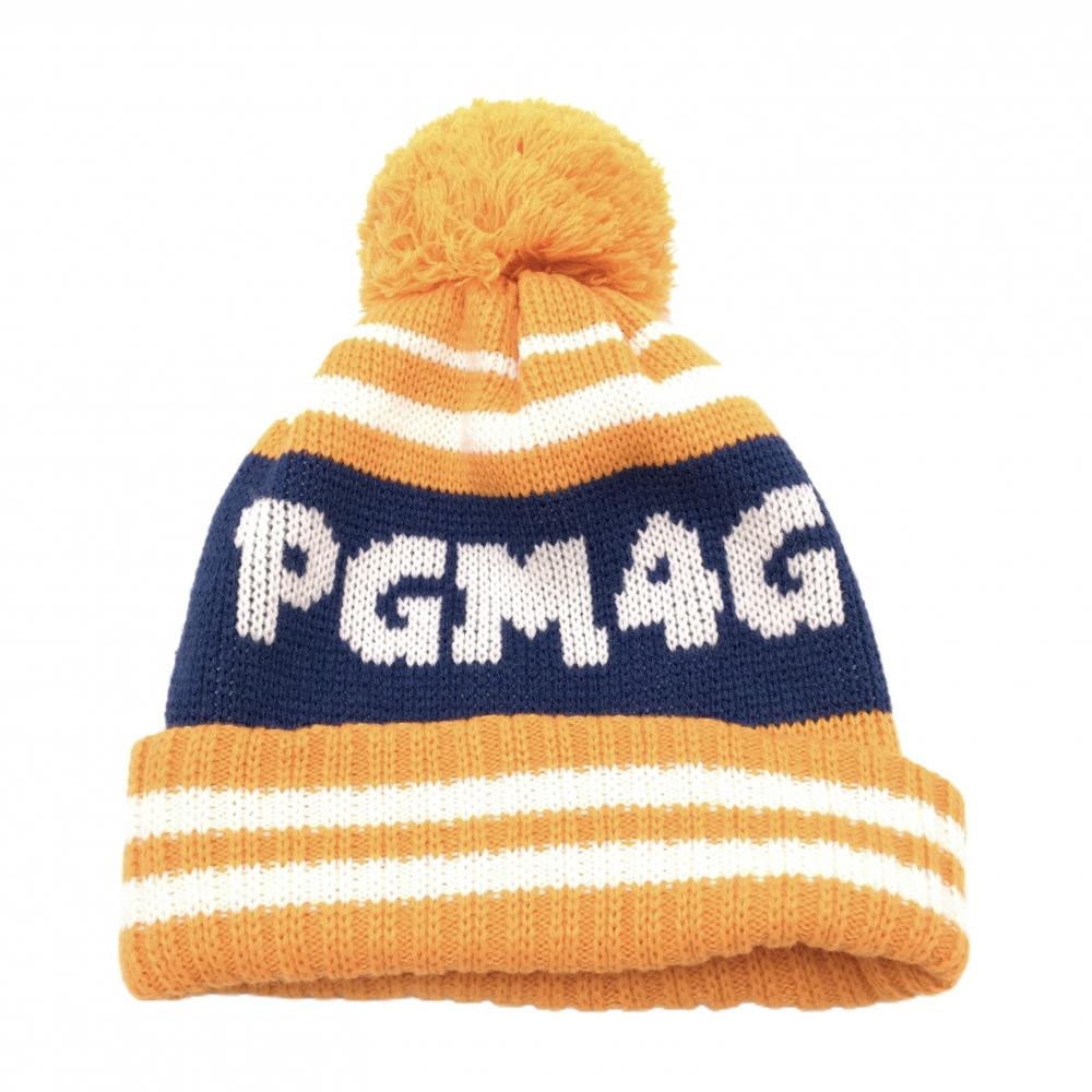 【超美品】パーリーゲイツ ニット帽 オレンジ×ネイビー×白 ボーダー調 ボンボン付き ウール混 FR ゴルフウェア PEARLY GATES