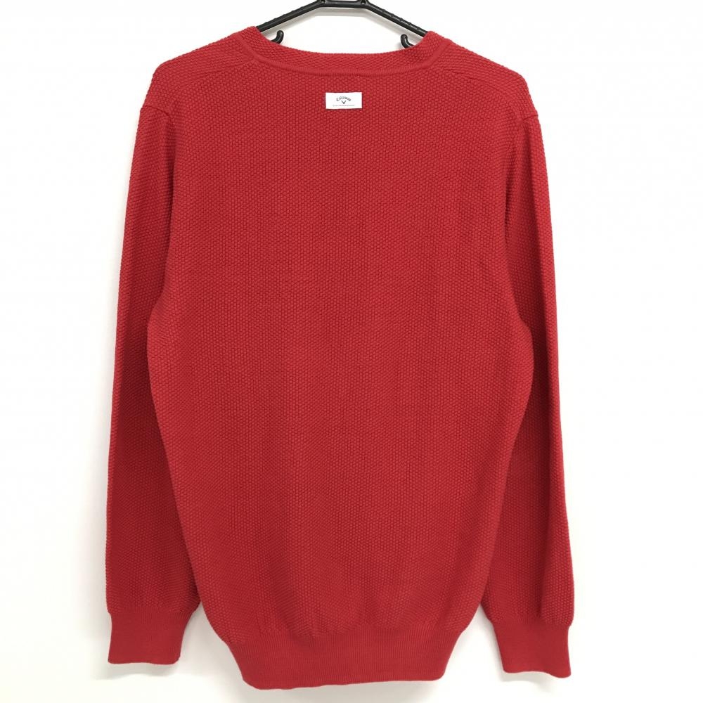 【美品】キャロウェイ セーター レッド 凹凸生地 ロゴ刺しゅう カシミヤ混 ニット メンズ L ゴルフウェア Callaway