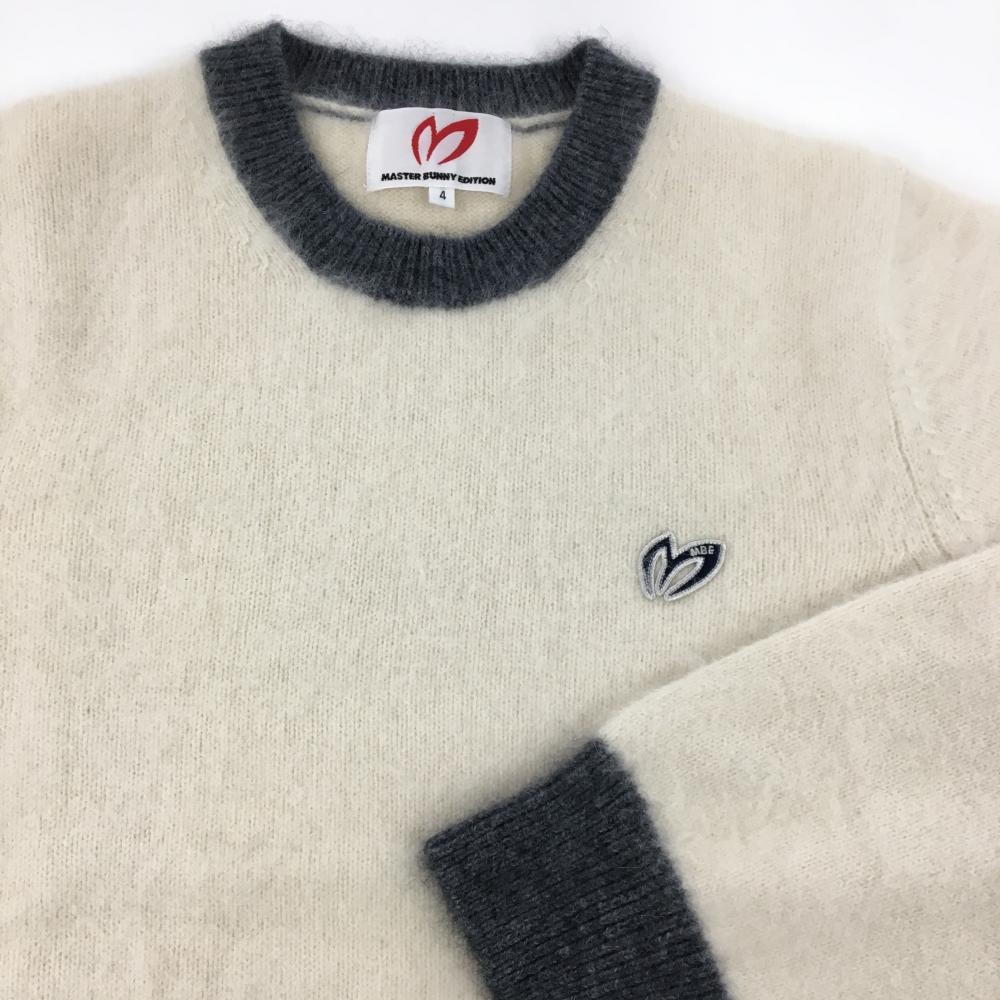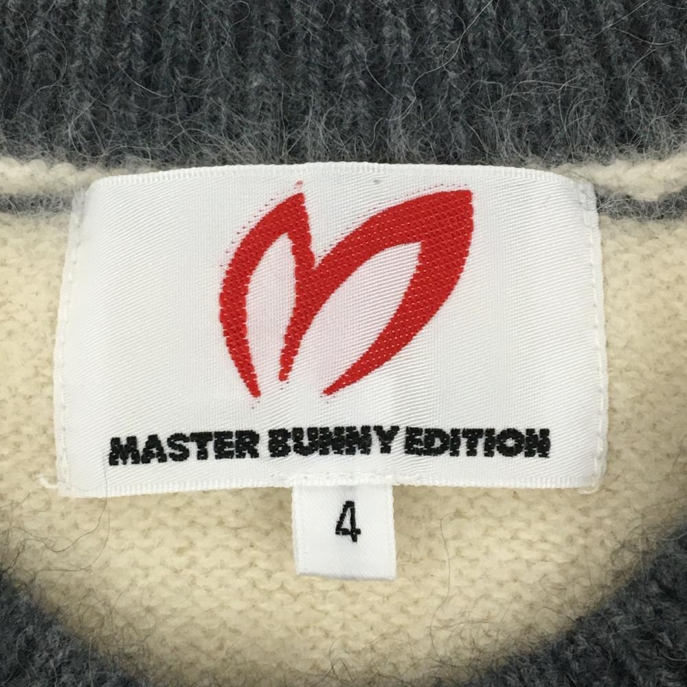 【美品】マスターバニー セーター 白×グレー ウール混 ニット メンズ 4(M) ゴルフウェア MASTER BUNNY EDITION