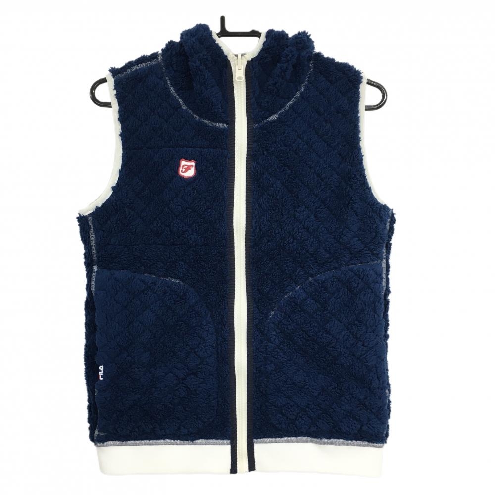 【美品】フィラ フード付リバーシブルベスト グレー 裏ボアネイビー レディース M ゴルフウェア FILA GOLF