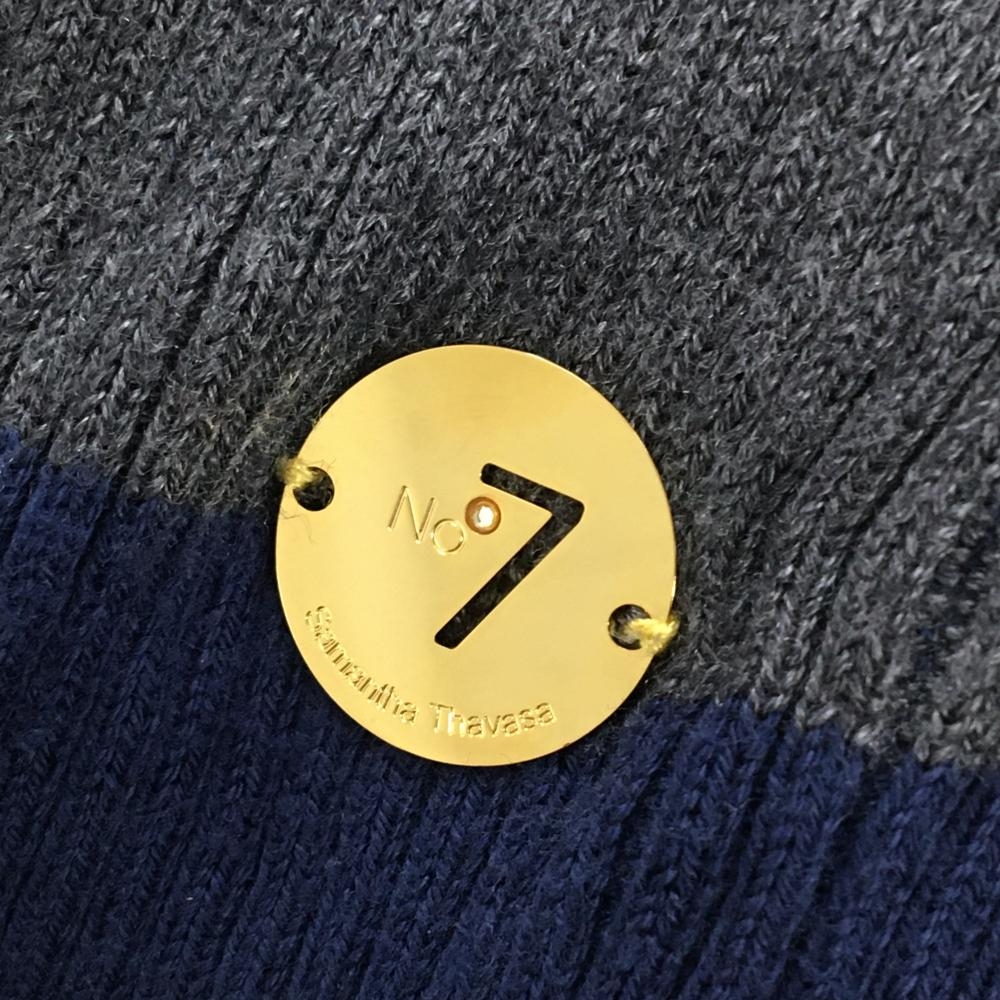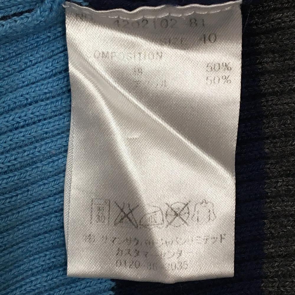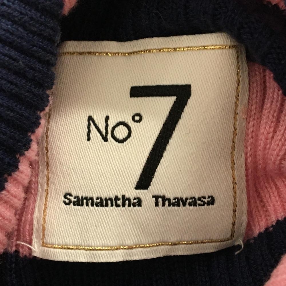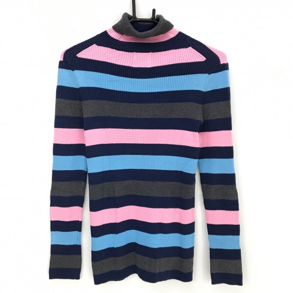 【美品】サマンサタバサNo.7 タートルネックセーター ピンク×ネイビー×グレー ボーダー レディース 40(L) ゴルフウェア Samantha Thavasa