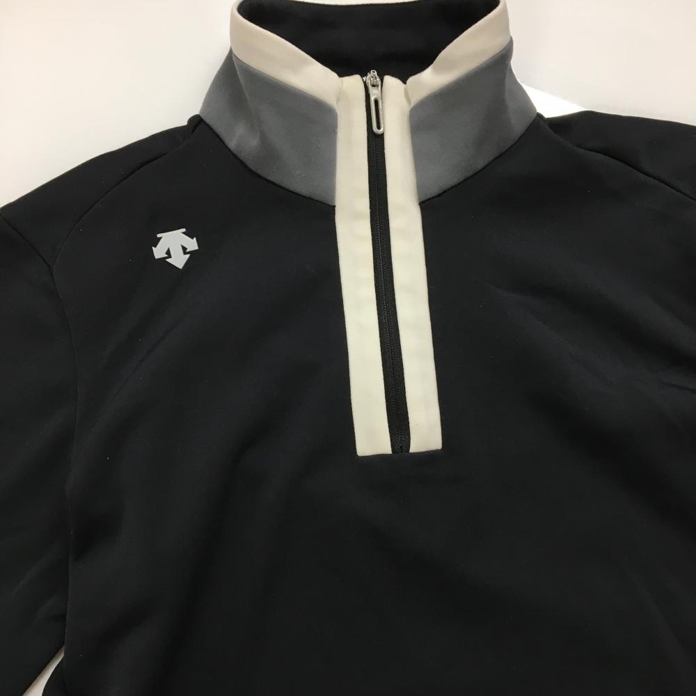 デサントゴルフ 長袖ハイネックシャツ 黒×グレー 肩ロゴ ハーフジップ 裏微起毛 中田英寿 レディース S ゴルフウェア DESCENTE