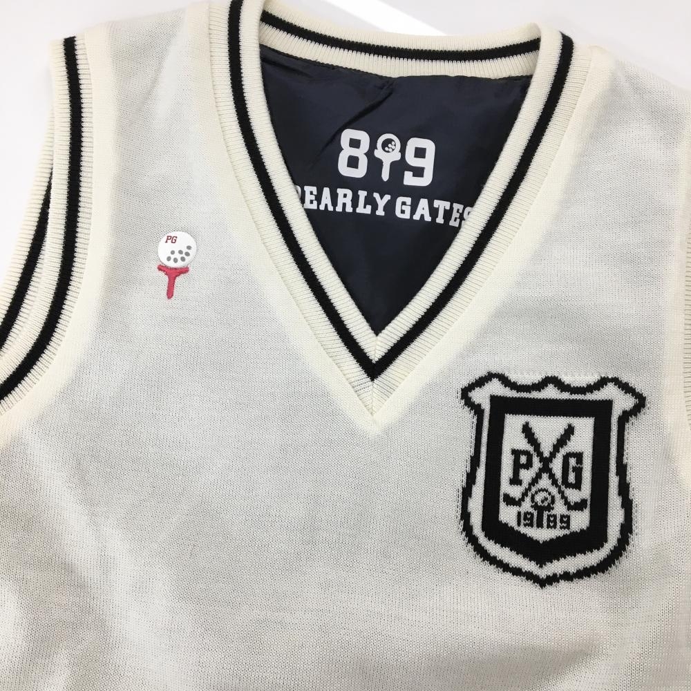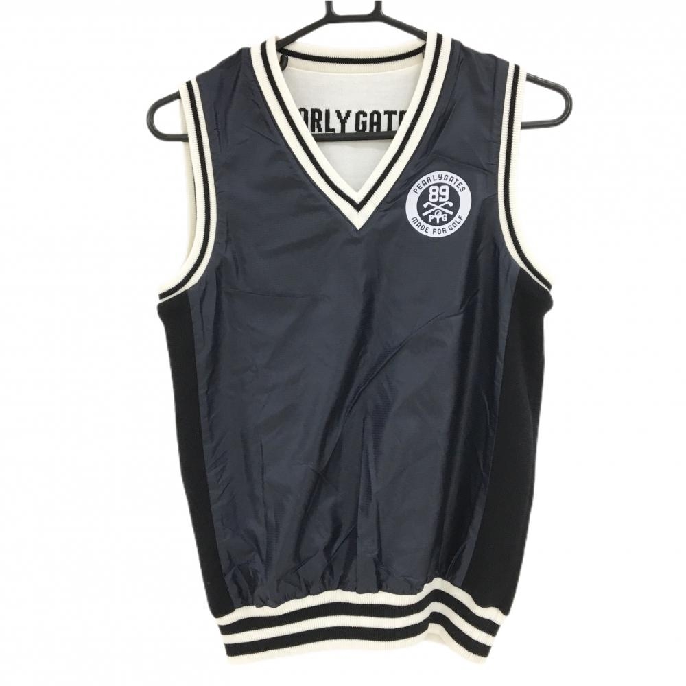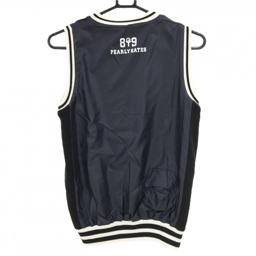 【新品】パーリーゲイツ リバーシブルニットベスト 白×ネイビー ウール混 レディース 1(M) ゴルフウェア PEARLY GATES