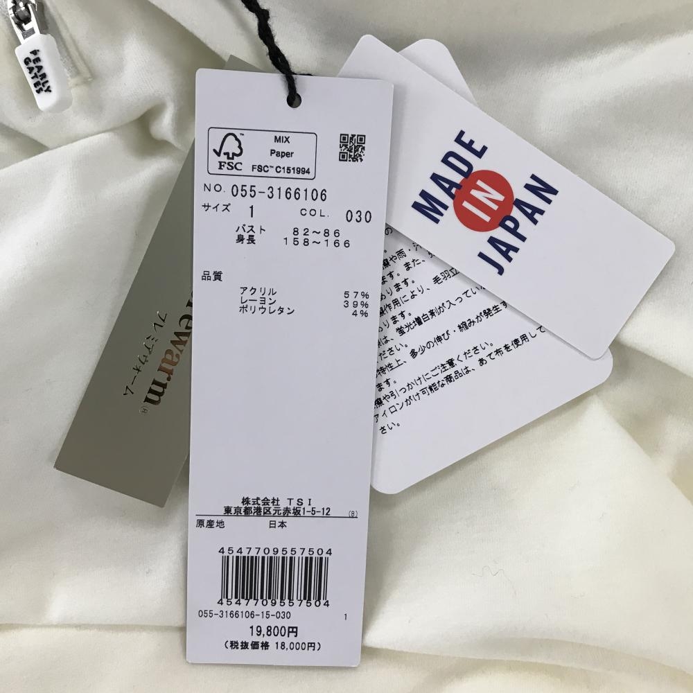 【新品】パーリーゲイツ 長袖ハイネックシャツ アイボリー ハーフジップ 微起毛 レディース 1(M) ゴルフウェア 2023年モデル PEARLY GATES