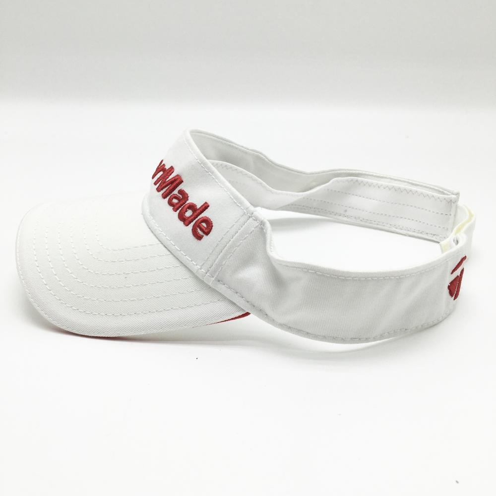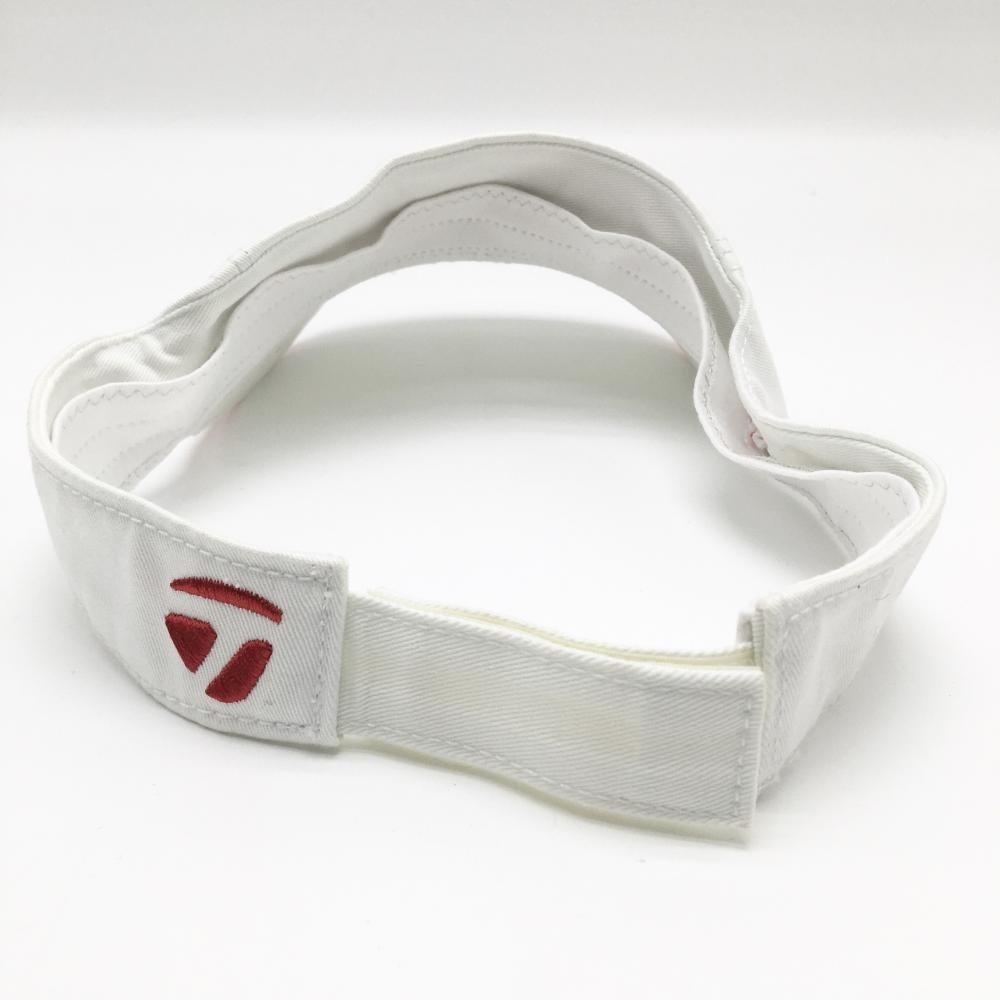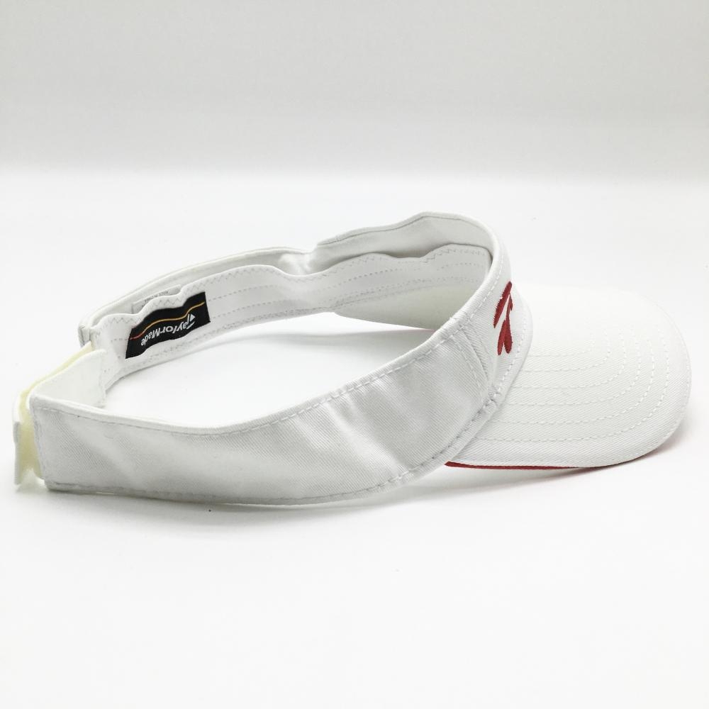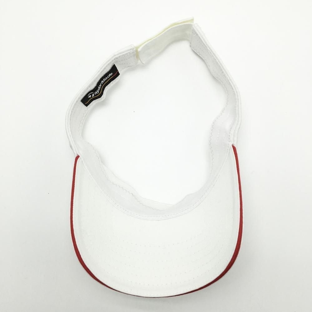 【美品】テーラーメイド サンバイザー 白×レッド ロゴ刺しゅう フリー(57-59cm) ゴルフウェア TaylorMade