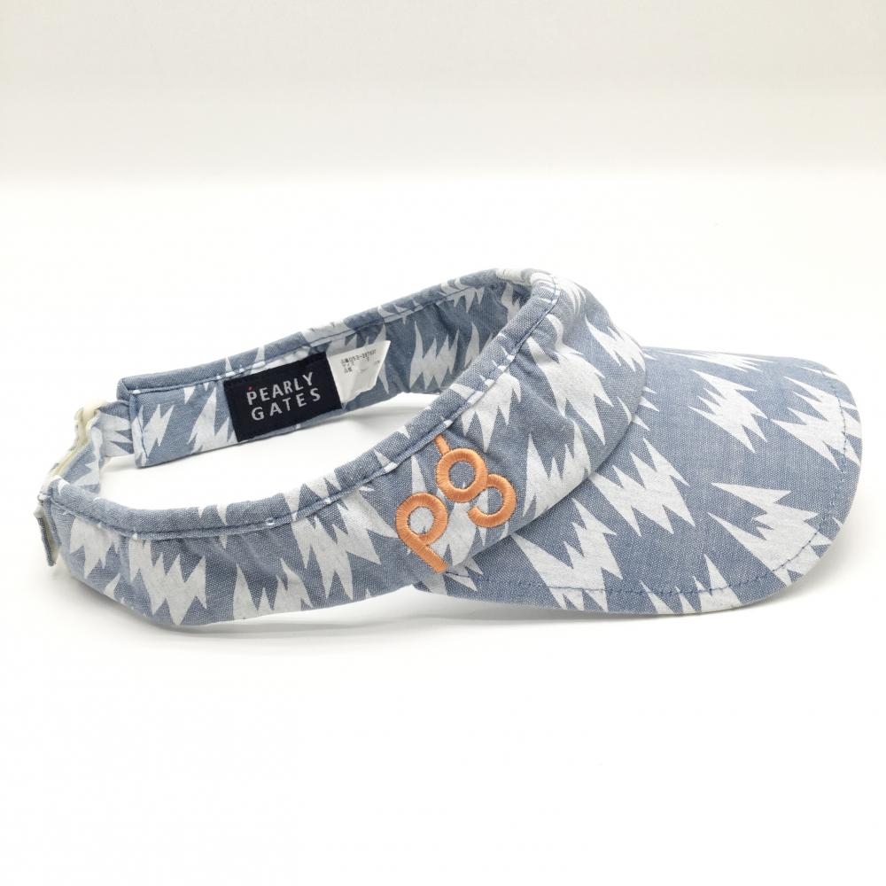 パーリーゲイツ サンバイザー グレーネイビー系×白 総柄 コットン100% レディース S ゴルフウェア PEARLY GATES