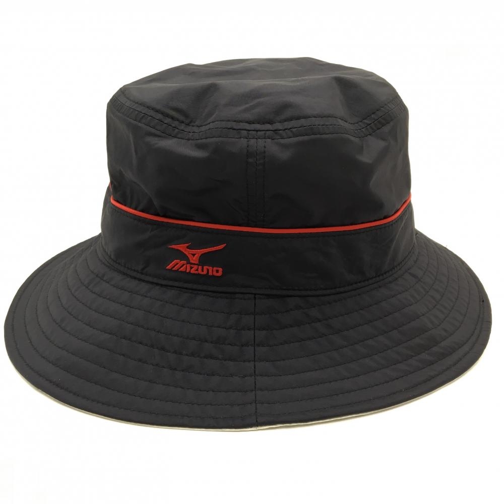 【超美品】ミズノ ハット 黒×レッド ナイロン100% F(57cm) ゴルフウェア MIZUNO