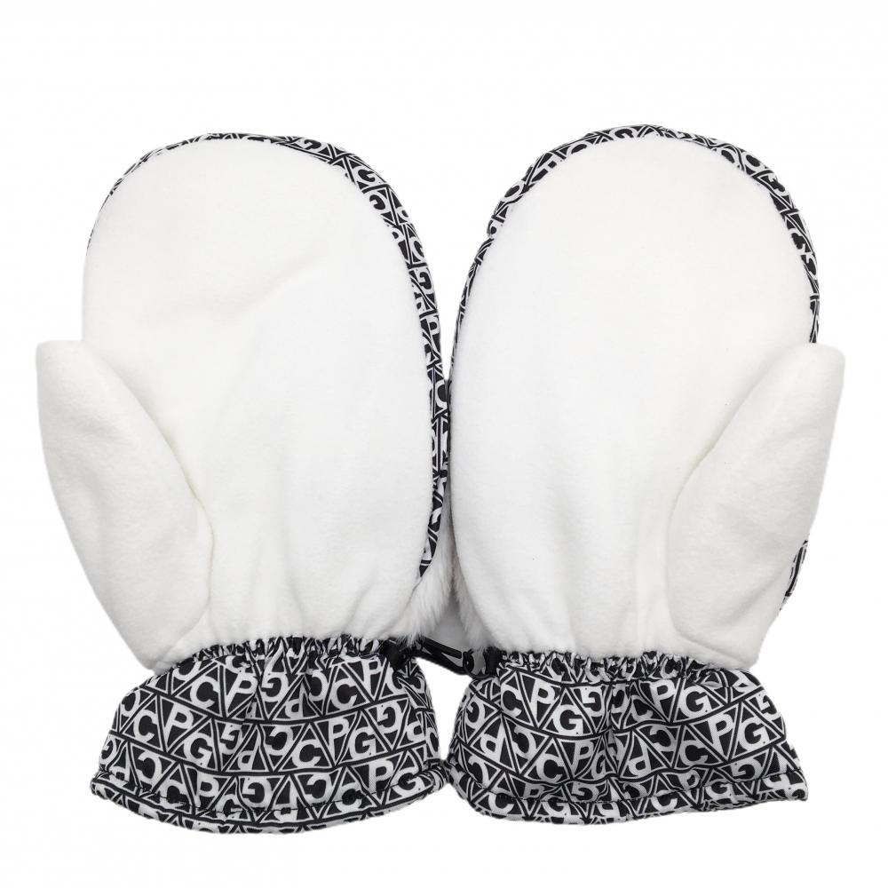 【新品】CPG 手袋 黒×白 ロゴ総柄 一部ボア ミトングローブ レディース ONE ゴルフウェア CPG