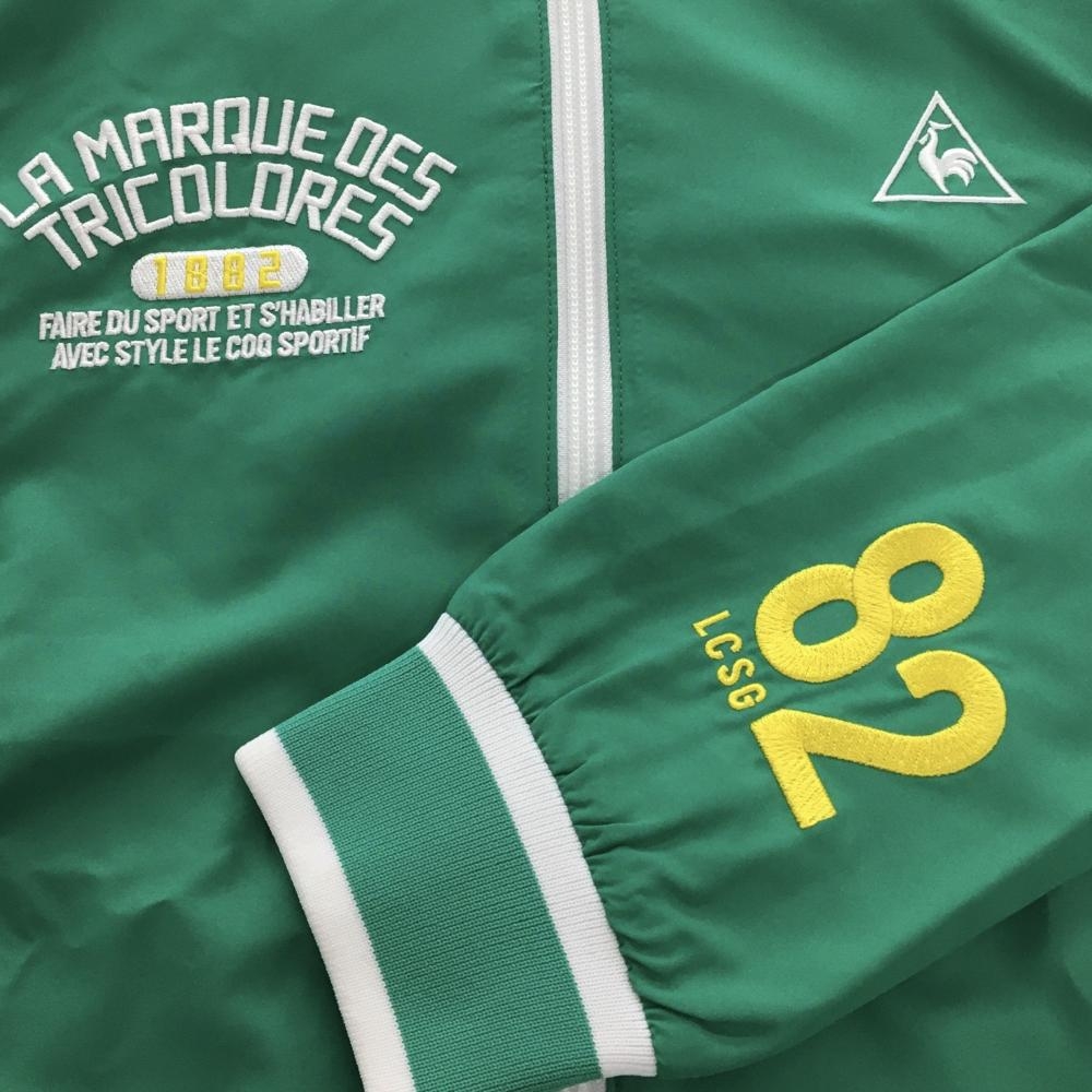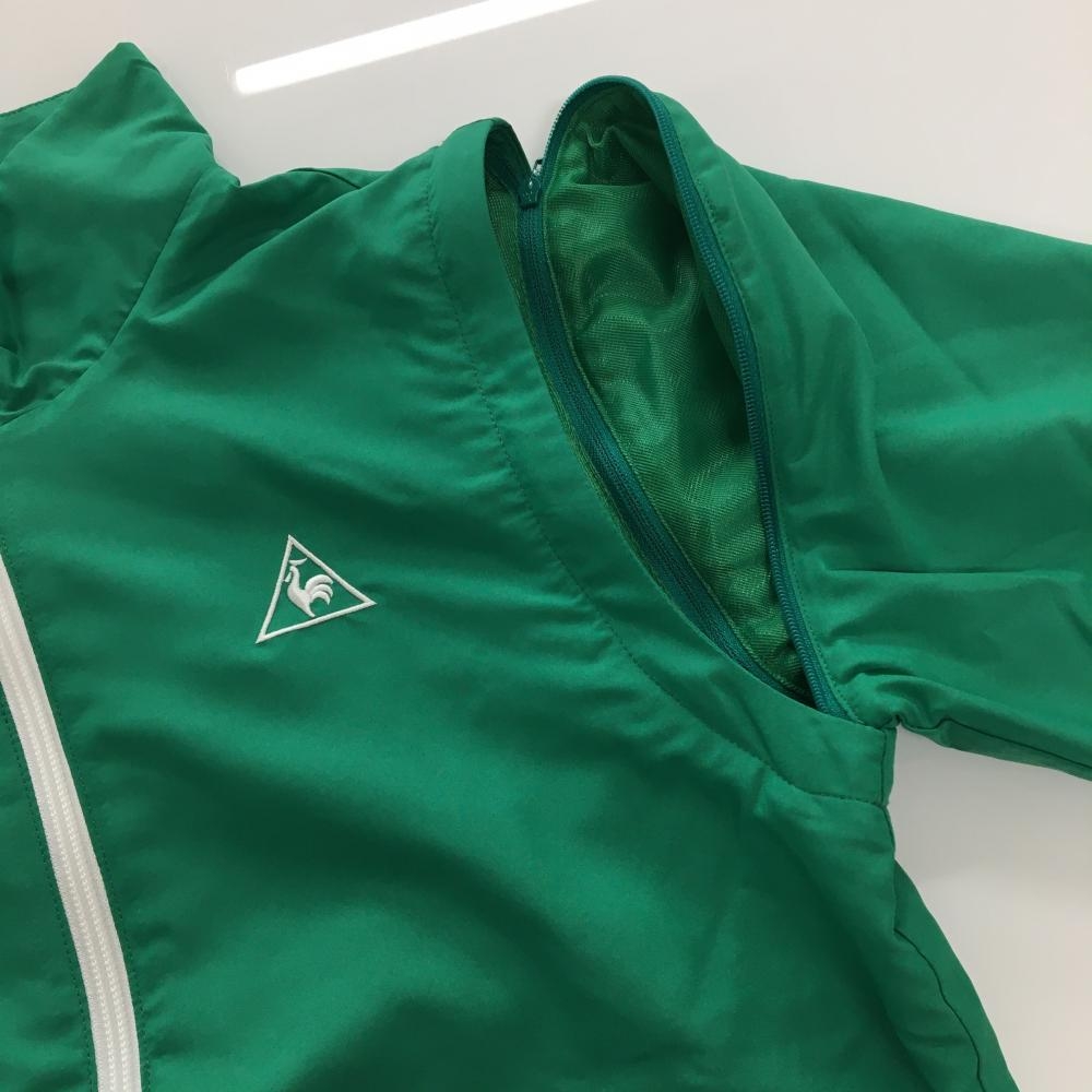 【超美品】ルコックゴルフ 2WAYブルゾン グリーン×白 袖着脱可 メッシュ裏地 ジャケット レディース S ゴルフウェア le coq sportif