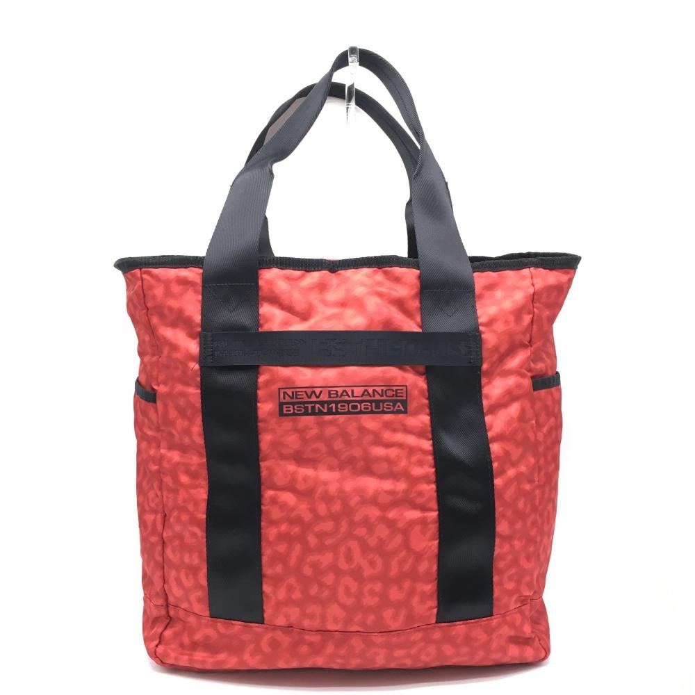 【美品】ニューバランスゴルフ ボストンバッグ レッド×黒 レオパード柄 内外ポケット ゴルフ New Balance