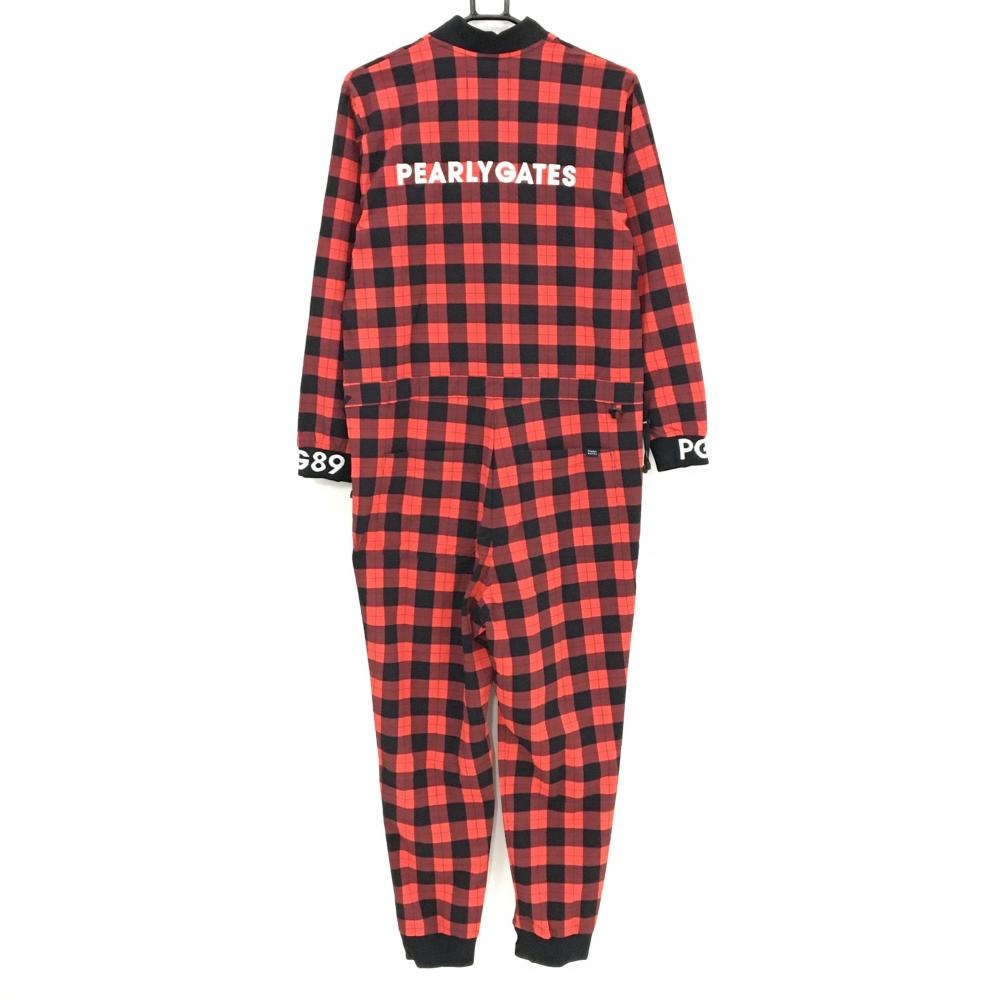 【新品】パーリーゲイツ オールインワン レッド×黒 チェック ストレッチ レディース 1(M) ゴルフウェア PEARLY GATES