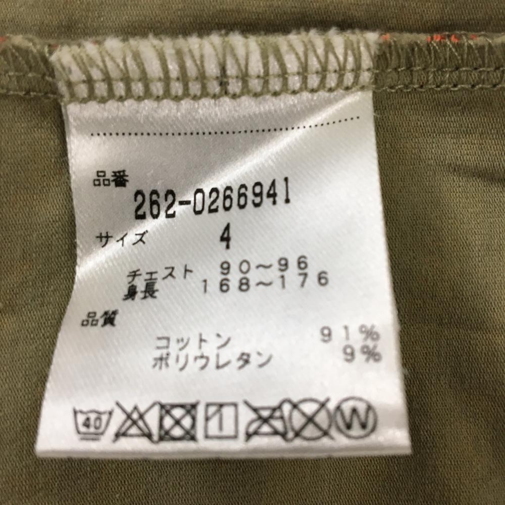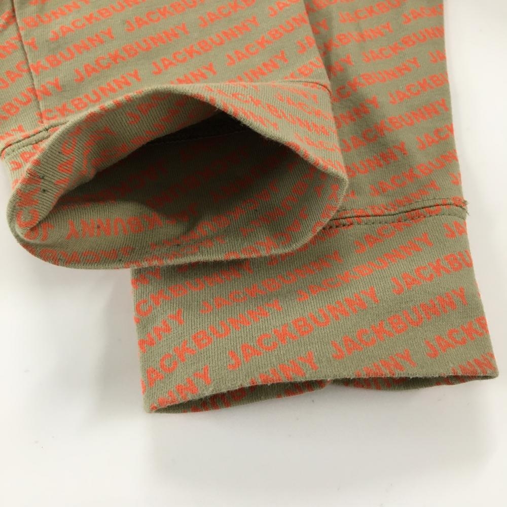【超美品】ジャックバニー 長袖ハイネックシャツ ベージュ×オレンジ ロゴ総柄 ストレッチ メンズ 4(M) ゴルフウェア Jack Bunny