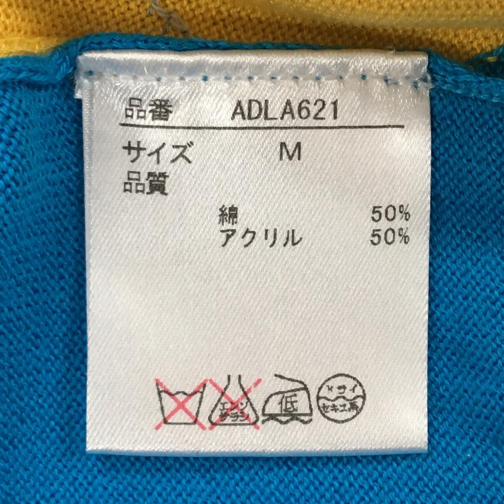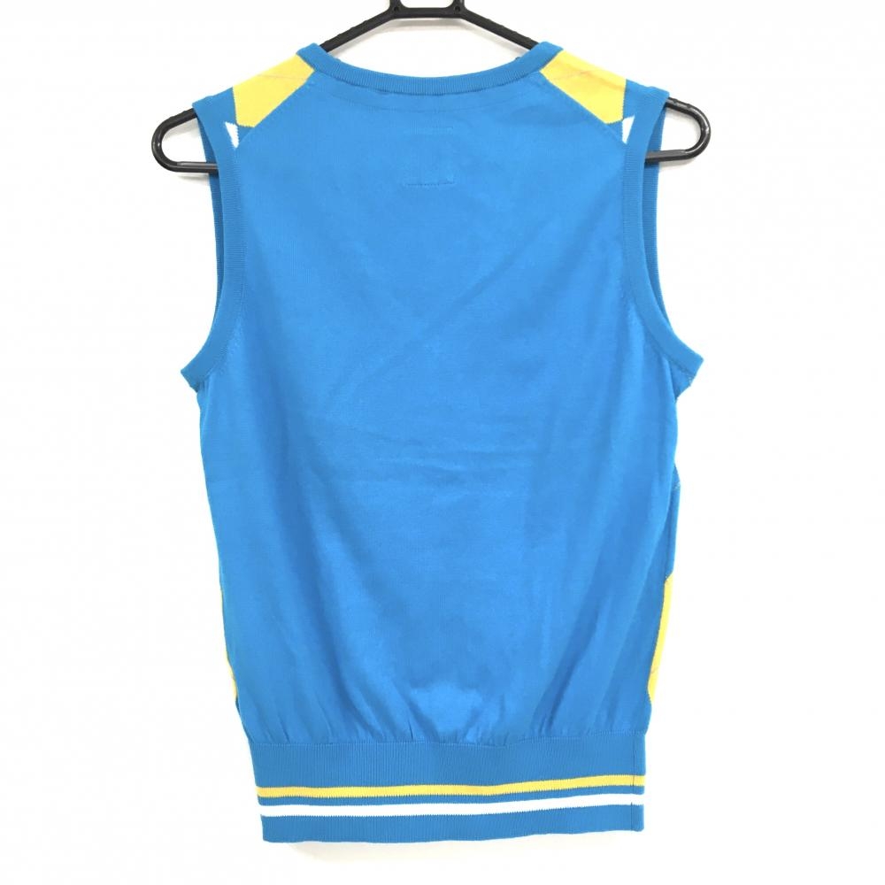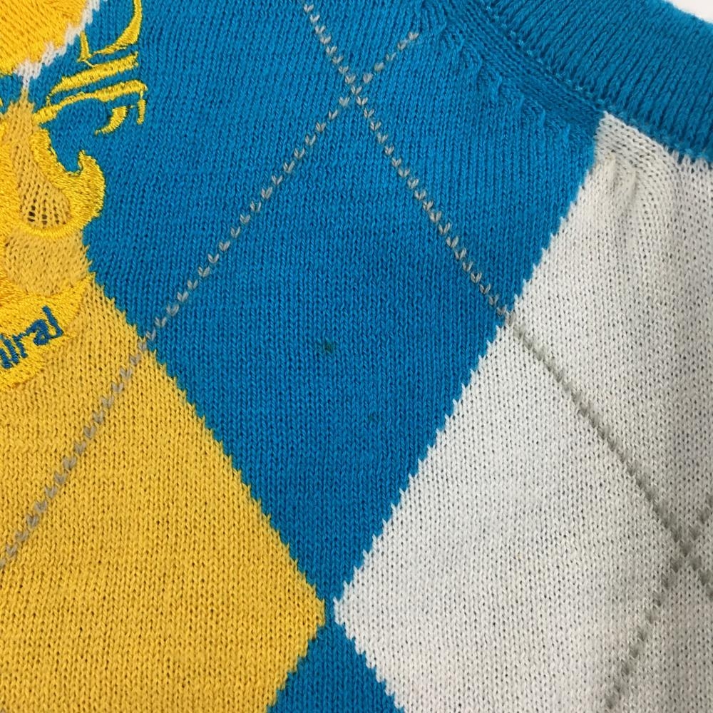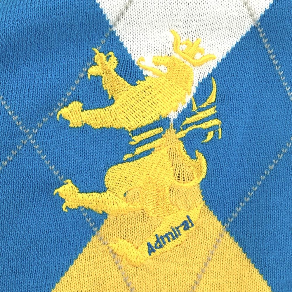 【美品】アドミラル ニットベスト ライトブルー×イエロー アーガイル柄 ロゴ刺しゅう Vネック レディース M ゴルフウェア Admiral