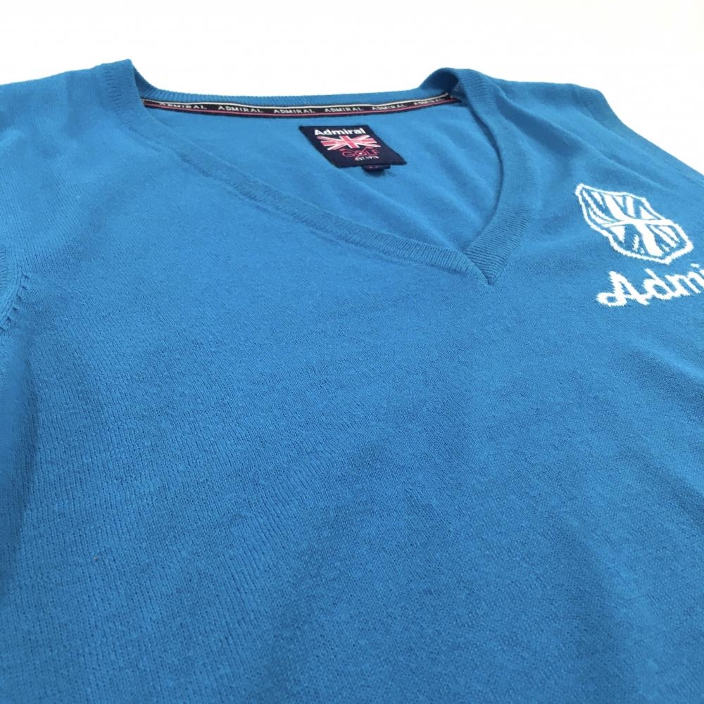 【美品】アドミラル ニットベスト ライトブルー ロゴ白 Vネック 薄手 レディース M ゴルフウェア Admiral