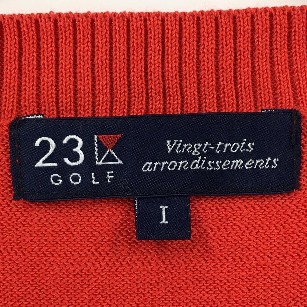 23区ゴルフ ニットベスト レッド×白 ラインストーンクラウン Vネック レディース I(M) ゴルフウェア 23区