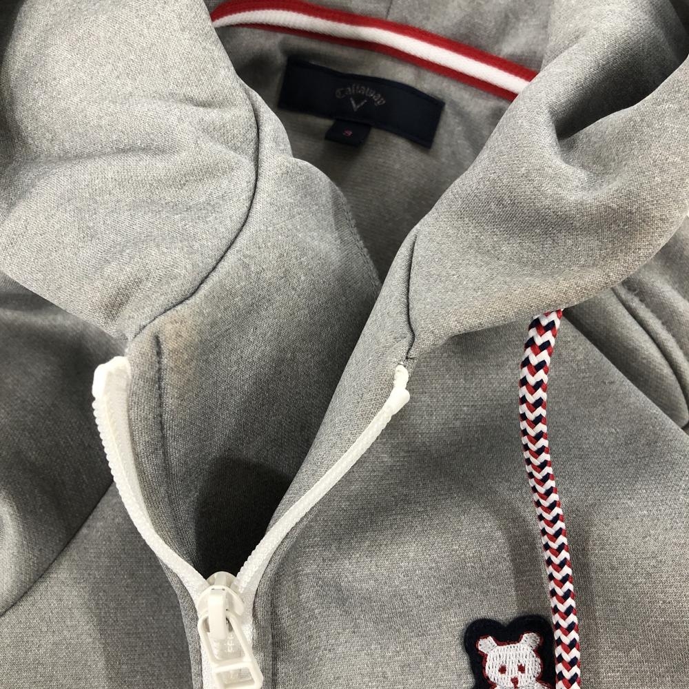 キャロウェイ ジップパーカー グレー×レッド ベアワッペン 裏起毛 星 ジャケット レディース S ゴルフウェア Callaway