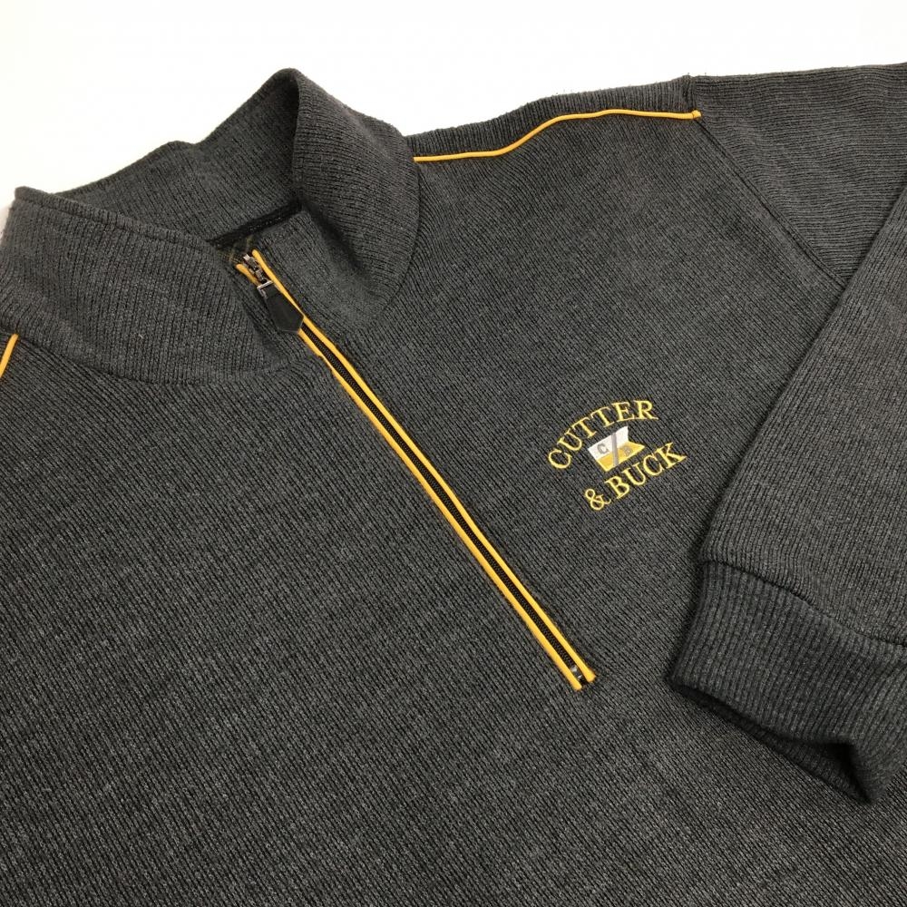 カッターアンドバック セーター ダークグレー×オレンジ パイピングライン ロゴ刺しゅう 裏起毛 メンズ LL ゴルフウェア CUTTER&BUCK
