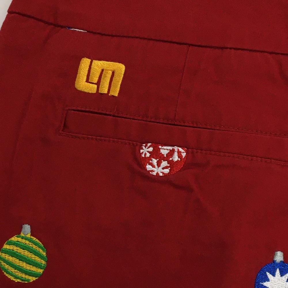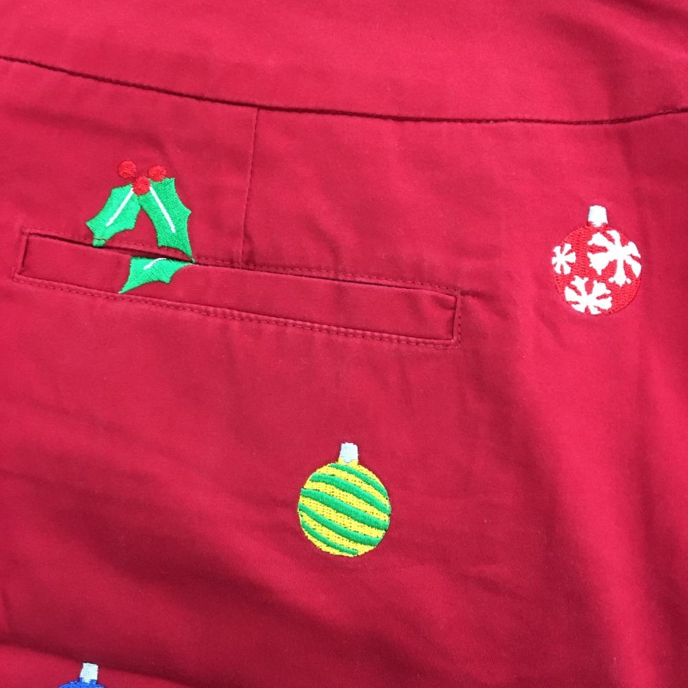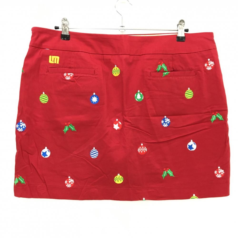 【美品】ラウドマウス スカート レッド×マルチカラー オーナメント総柄 刺しゅう レディース US14 ゴルフウェア 大きいサイズ LOUDMOUTH