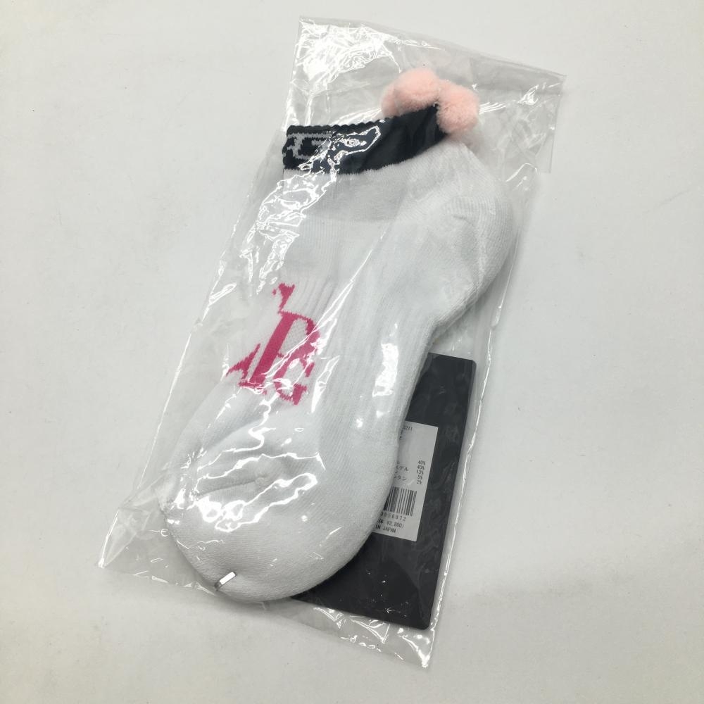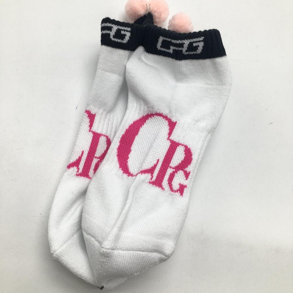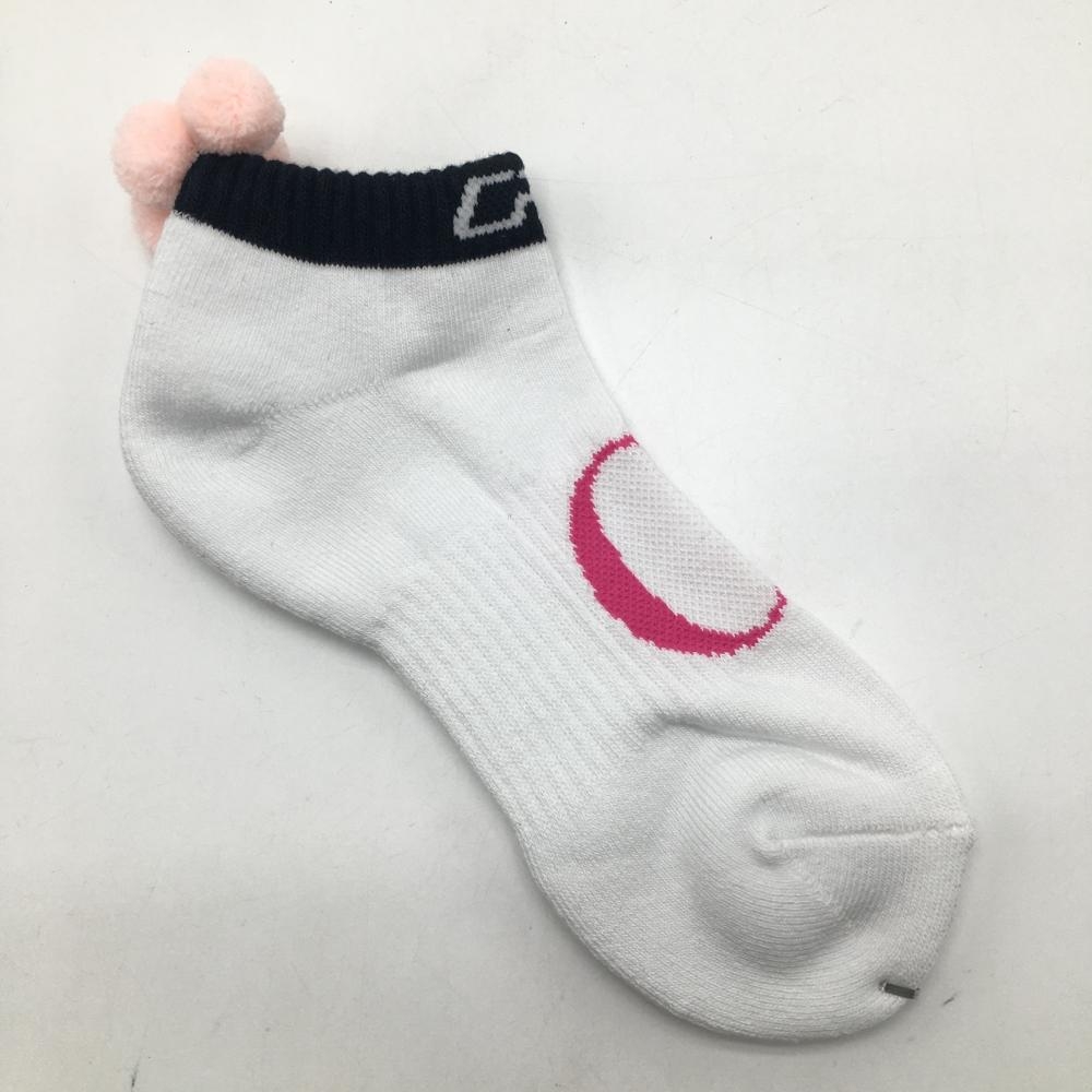 【未使用品】CPG アンクルソックス 白×ピンク ボンボン付き レディース ONE ゴルフウェア 2023年モデル CPG