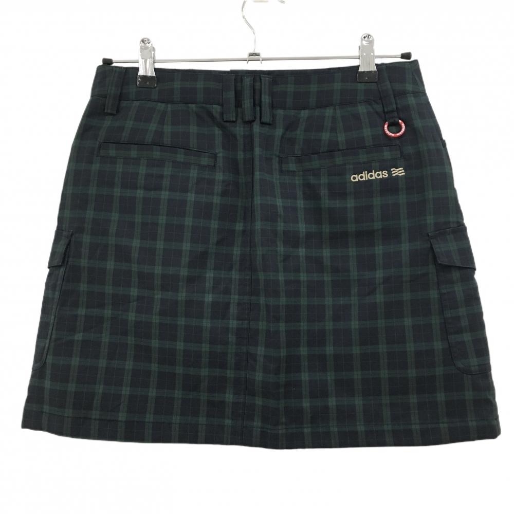 【超美品】アディダス 中綿スカート ネイビー×グリーン チェック 薄手 レディース M/M ゴルフウェア adidas