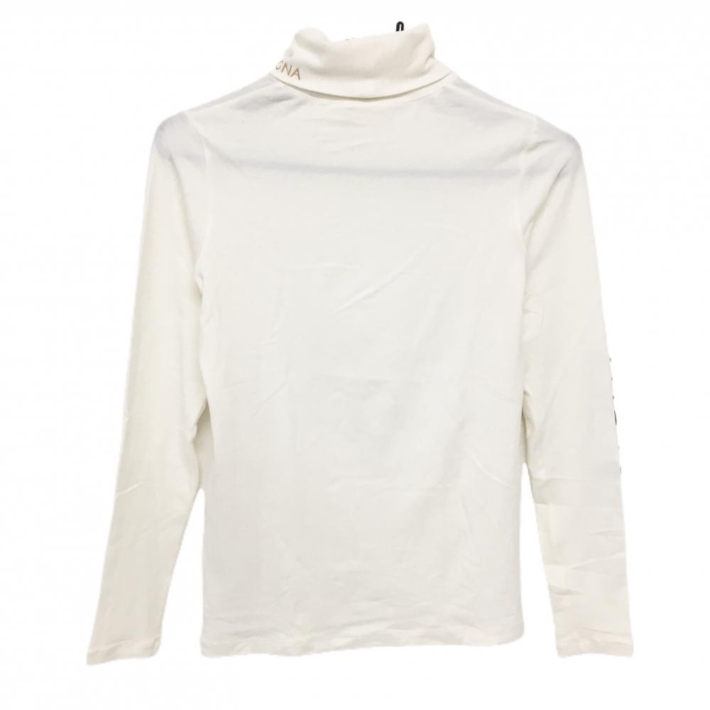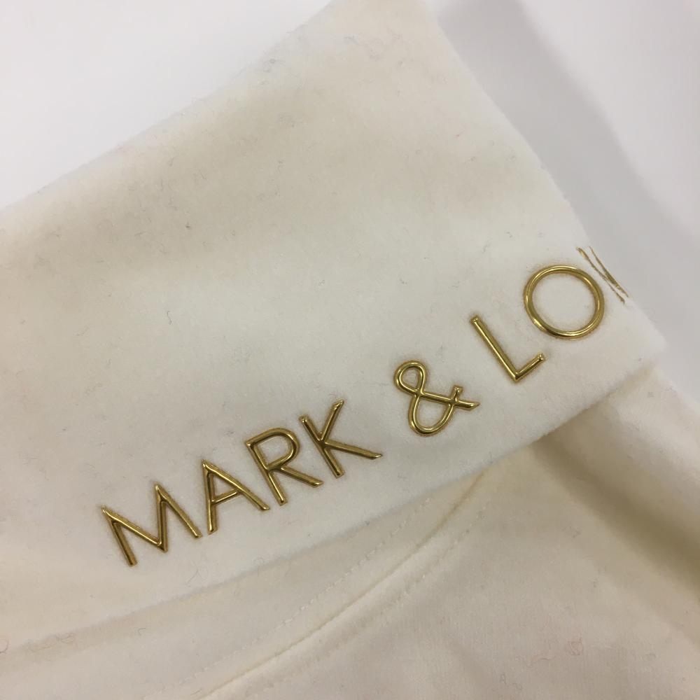 【美品】マークアンドロナ 長袖ハイネックシャツ 白×ネイビー 袖ロゴ 表微起毛 レディース S ゴルフウェア MARK&LONA