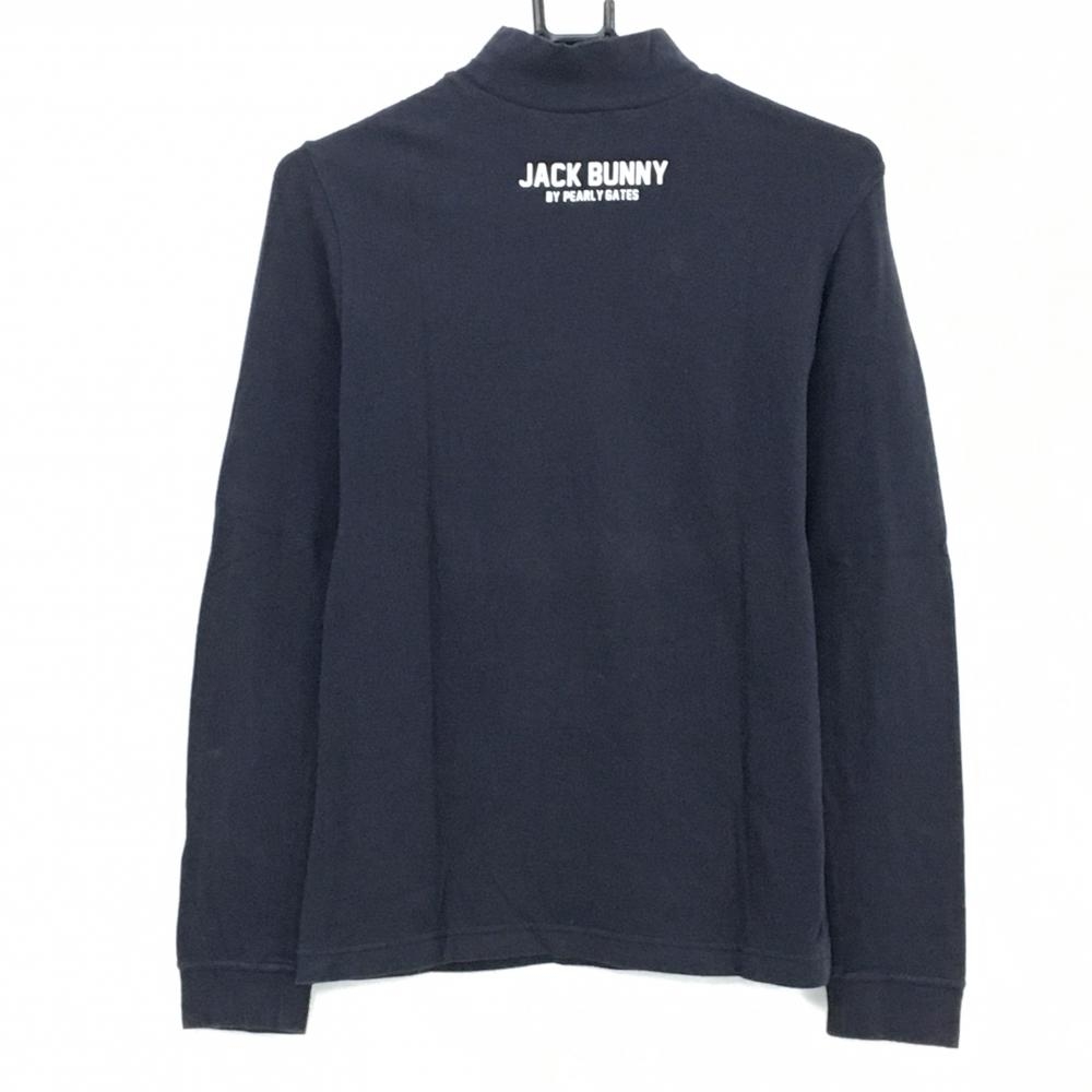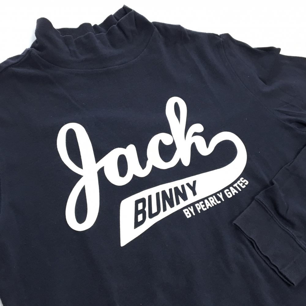 ジャックバニー 長袖ハイネックシャツ ネイビー×白 フロントロゴ レディース 2(L) ゴルフウェア Jack Bunny