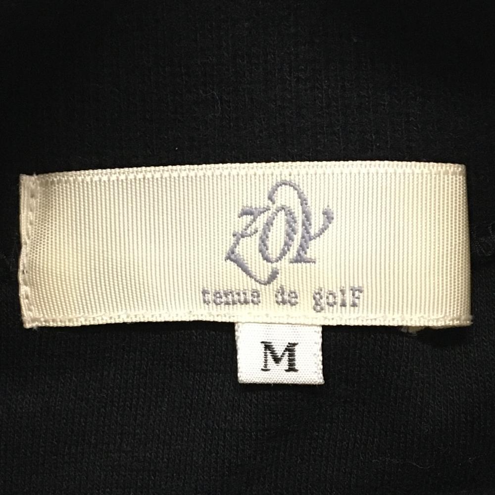 【美品】ゾーイ タートルネックセーター 黒×白 ロゴ刺しゅう コットン100% ニット レディース M ゴルフウェア ZOY