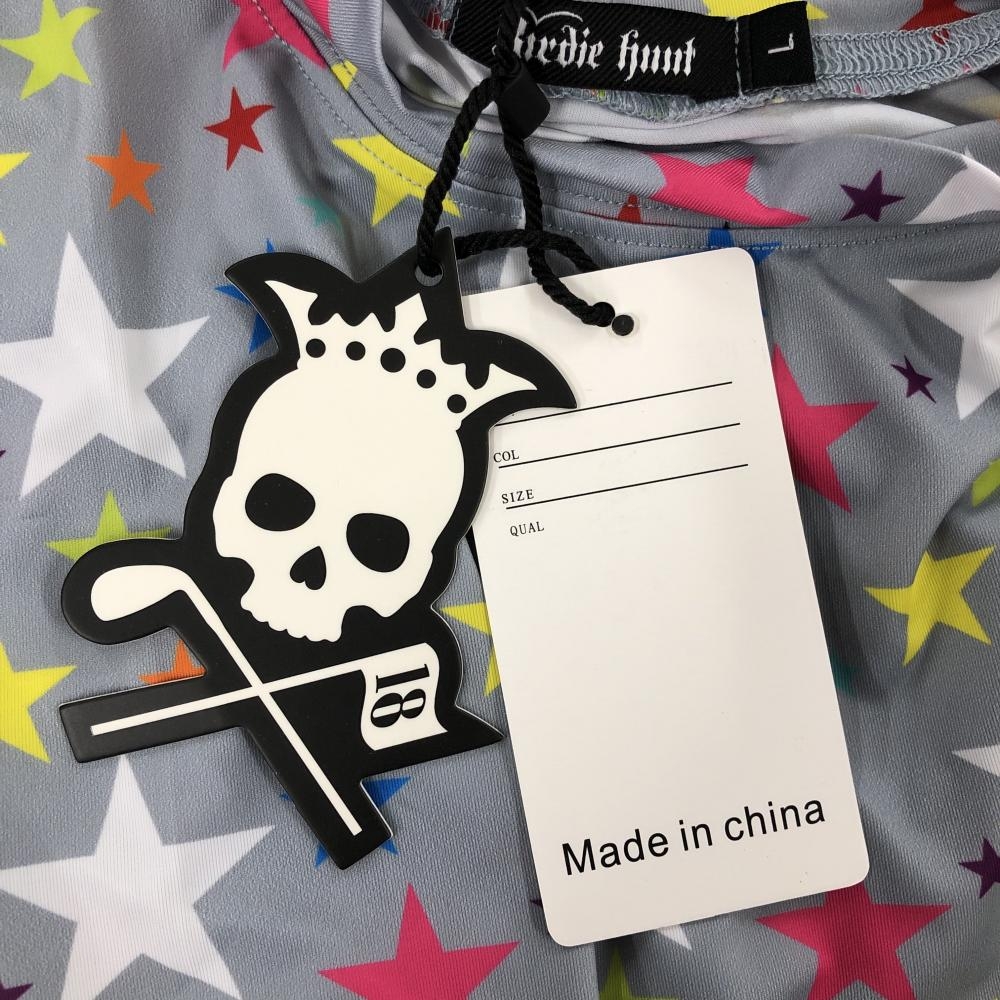 【新品】バーディーハント 長袖ハイネックシャツ グレー×マルチカラー 星柄 インナーシャツ メンズ L ゴルフウェア Birdie hunt